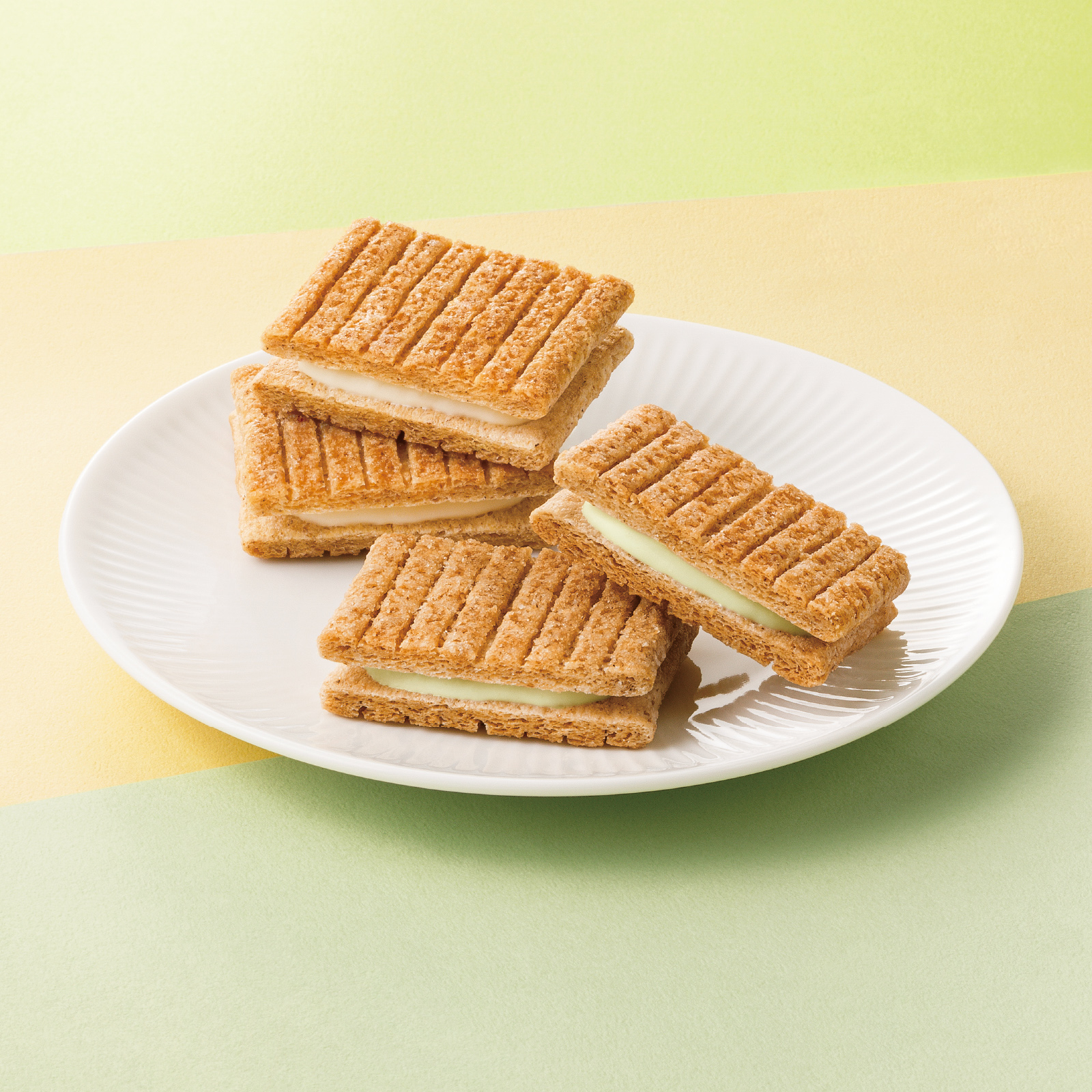 全粒粉やライ麦が香ばしい特製シリアル生地をシュガーバターでこんがり焼いてミルキー感が自慢のホワイトショコラをサンドしました。サクサク、ミルキーな味わいは、何度でも食べたくなるおいしさでずっと愛され続けています。