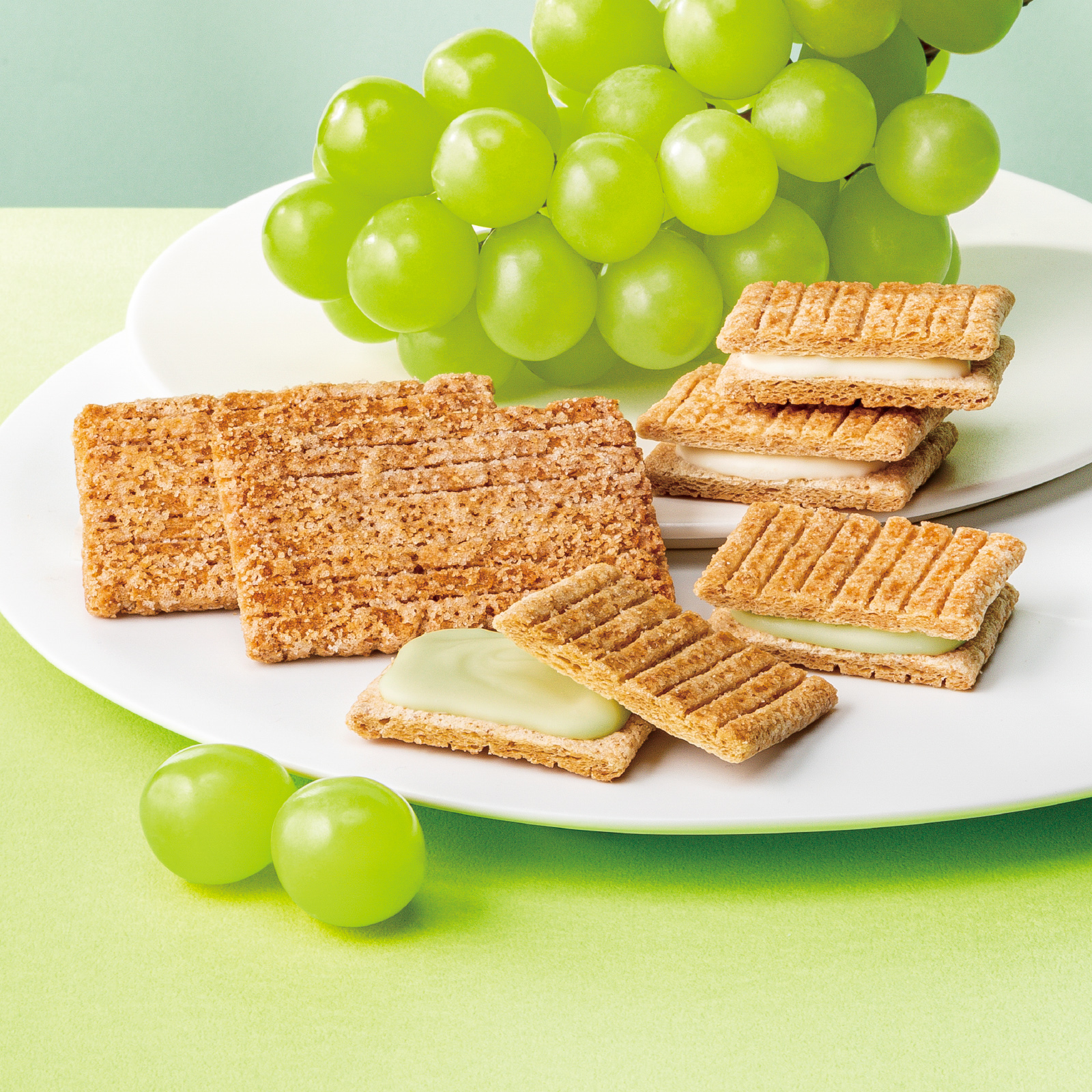 国産シャインマスカットの果汁を練り込んだミルキーなホワイトショコラを、みずみずしい国産シャインマスカット香るシリアル生地でサンドしました。今の季節に食べたいフルーティーなサンドです。