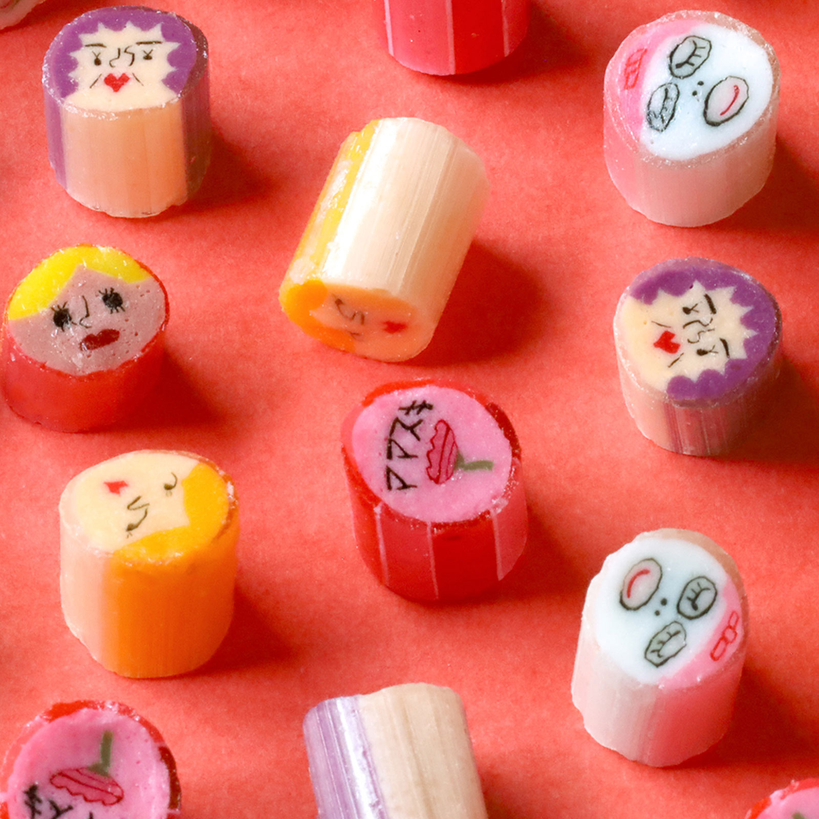 大口注文・法人のお問い合わせはこちらギャルママやおかん、顔パック中のひとコマまで、どこか見覚えのある“ママ像”を、直径約1cmの小さなキャンディの中に繊細に表現。顔そのものを大胆にデザインし、思わず手に取りたくなるインパクトと新しさを兼ね備えています。ひとつひとつ異なる表情の中から「これ、うちの母に似ているかも」と探す楽しさも魅力のひとつです。