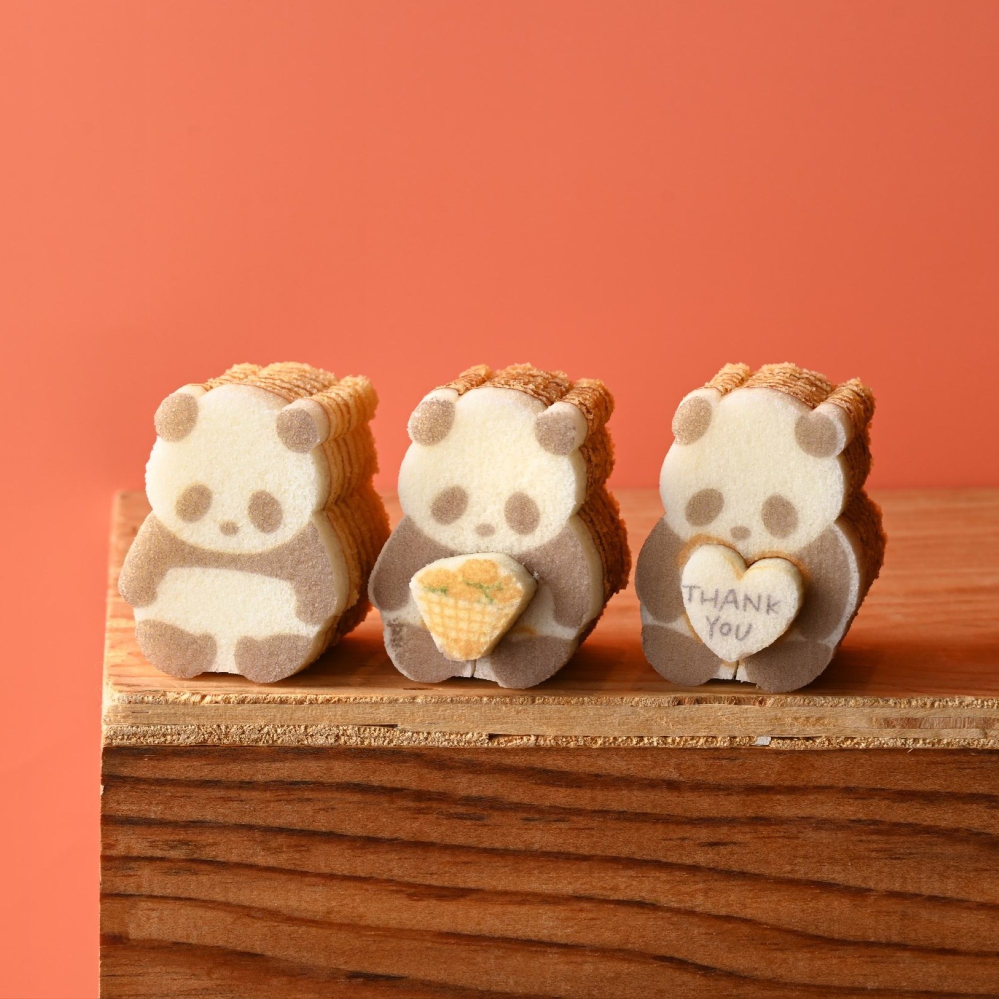大口注文・法人のお問い合わせはこちらとびきりきれいな花束を抱えた「花束パンダバウム(メープル味)」、ありがとうの言葉を贈る「Thank Youパンダバウム(はちみつ味)」、定番人気のアーモンドがふわりと香る「パンダバウム(プレーン)」の詰合せです。