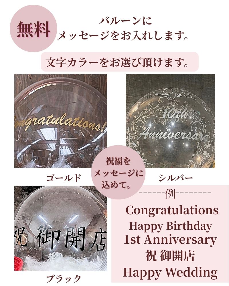 大口注文・法人のお問い合わせはこちらバルーンは2種類よりお選びいただけます。バルーンにお好きなメッセージを無料でお入れいたします。水やり不要でお手入れいらず。花粉の心配もないので飲食店などのお祝いにも喜ばれています。