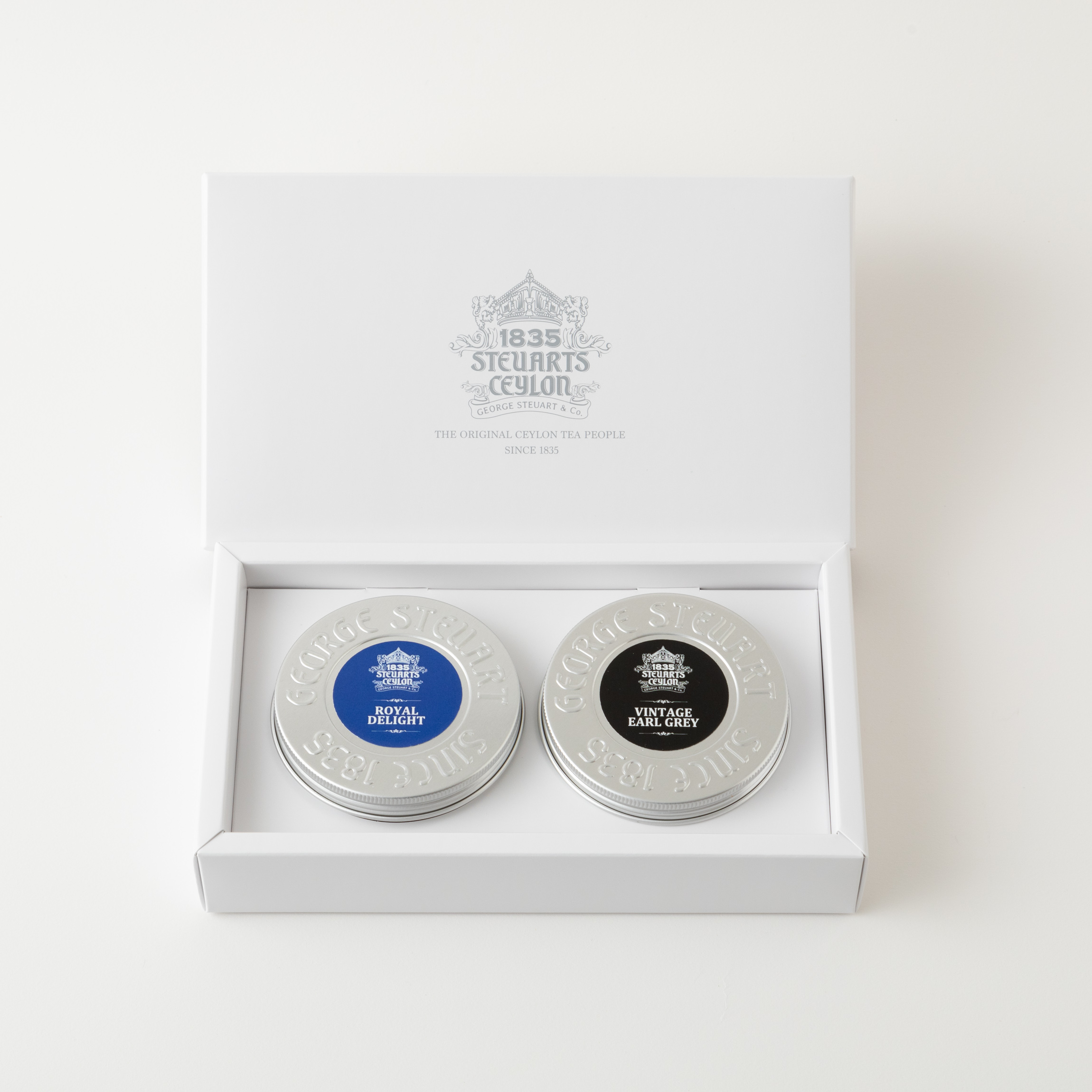 【ギフトボックス】リーフティーミニ缶2個セット(白) ロイヤルディライト+アールグレイ