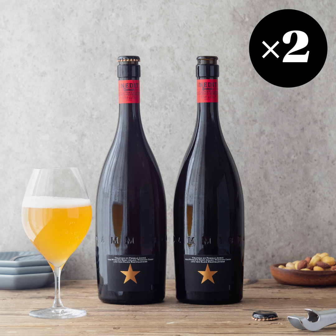 大口注文・法人のお問い合わせはこちら究極のビール2本入りセットを2箱お届けします。ギフトのおまとめ買いにおすすめです。 世界一予約のとれないといわれるスペインの超高級3つ星レストラン 「エルブジ」。その料理長フェラン・アドリアとソムリエチームが、「セレブを迎えるワインはあるが、ビールがない」をコンセプトにして、バルセロナNo.1のビールメーカー「ダム社」と共同開発して生まれた究極のビールです!まるでシャンパンのようにフルーティーで華やかな香りは、ぜひワイングラスでお楽しみください。