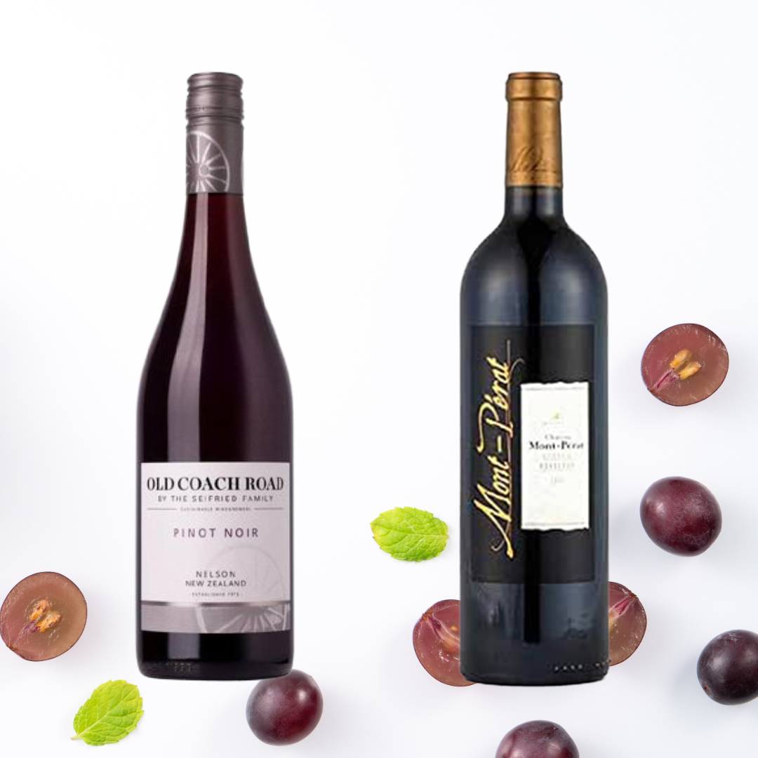 大口注文・法人のお問い合わせはこちら・オールド・コーチ・ロード ピノ・ノワール×1 ・シャトー・モン・ペラ ルージュ 2020×1 赤ワインの繊細な華やかさと濃密な力強さを楽しめる贅沢なセットです。