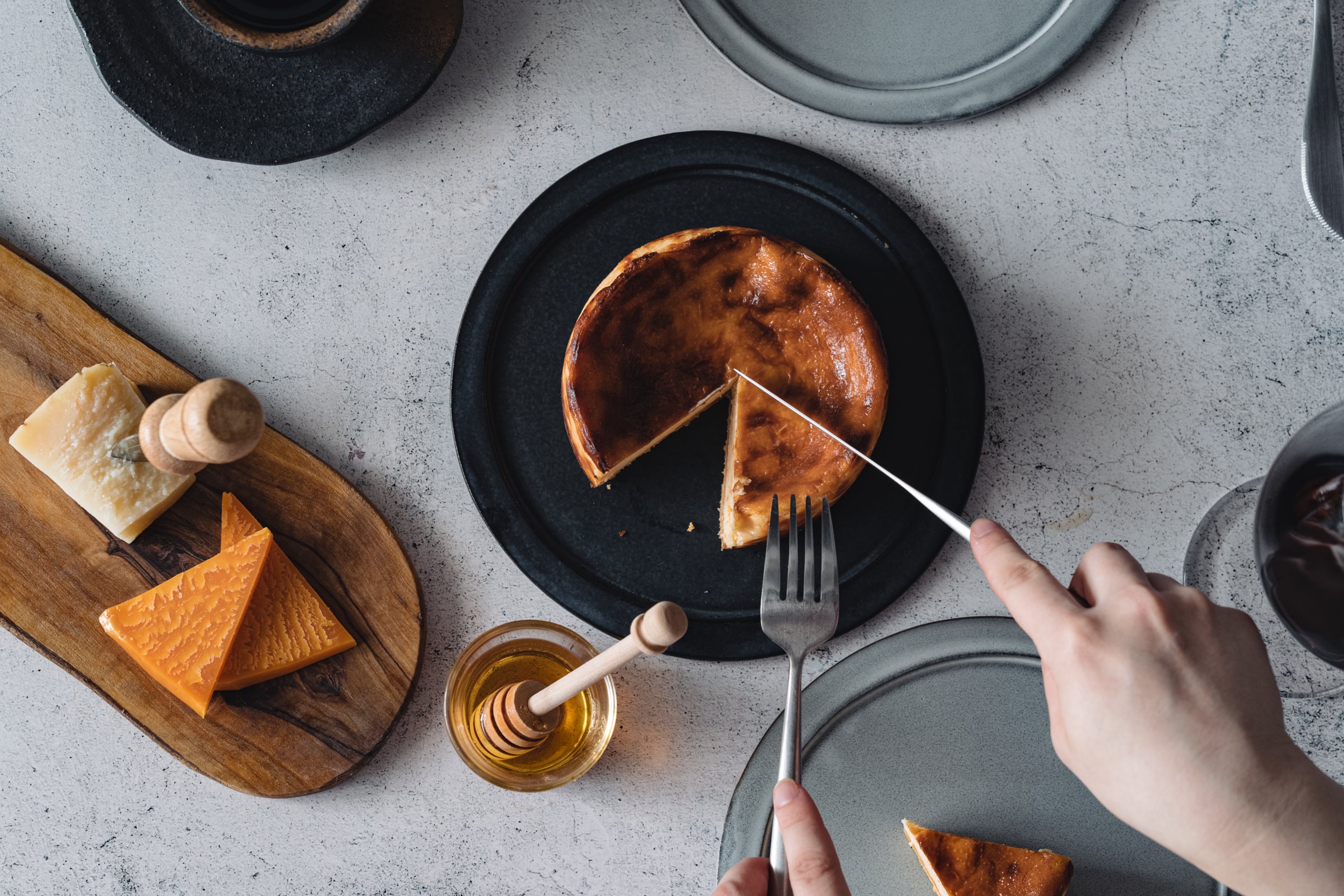 ラクレット、パルミジャーノ、クリームチーズ、3種類のチーズを使用し完成した濃厚チーズケーキ。チーズ好きのオーナーが2000日かけて考案したチーズケーキは、甘さ控えめでチーズの濃厚な味わいお楽しみいただけます。