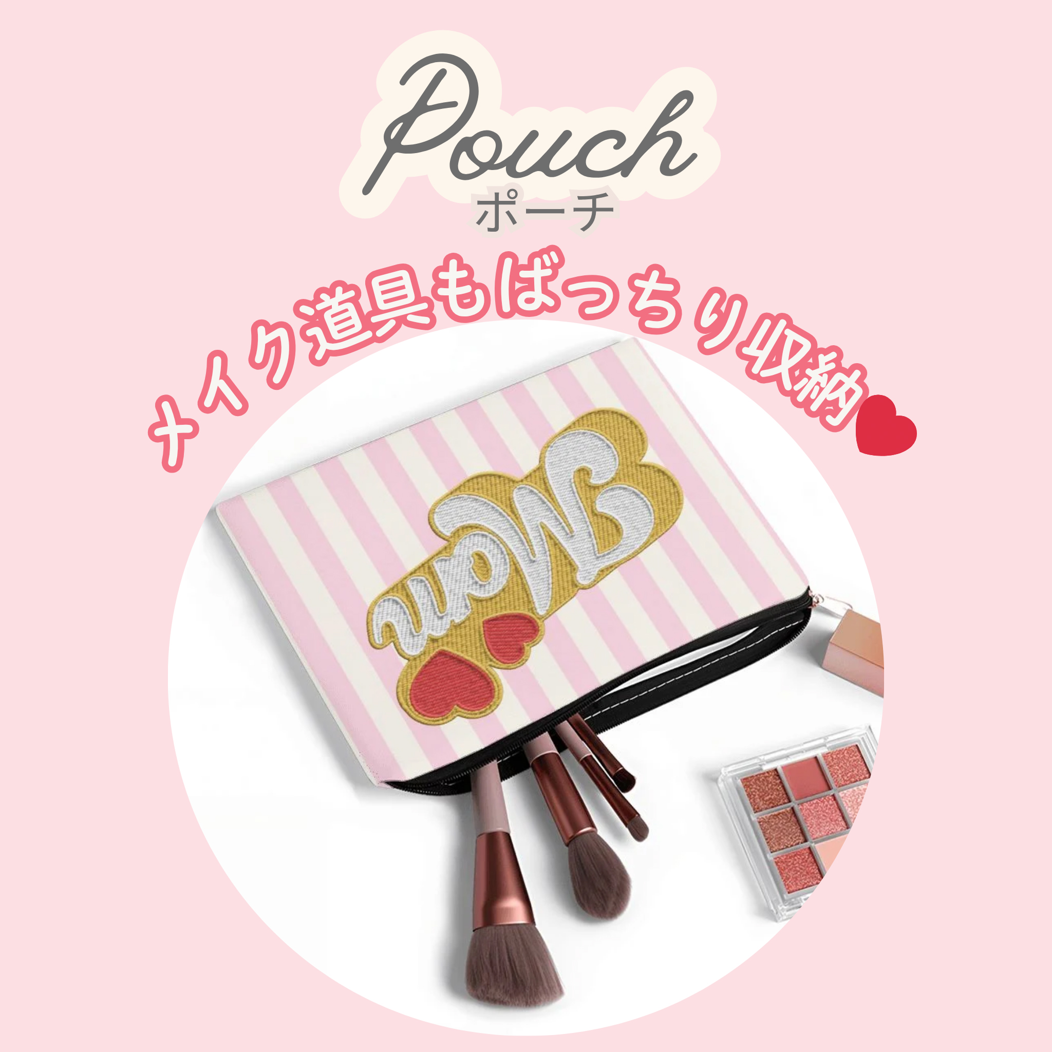 POPでおしゃれなMomデザインのポーチ。かわいさの中に遊び心を感じられるデザインが魅力です。コスメや小物を収納できる便利なアイテムで、バッグの中でも使いやすいサイズ感。メイク用品や日常の小物をまとめて持ち歩くことができます。
