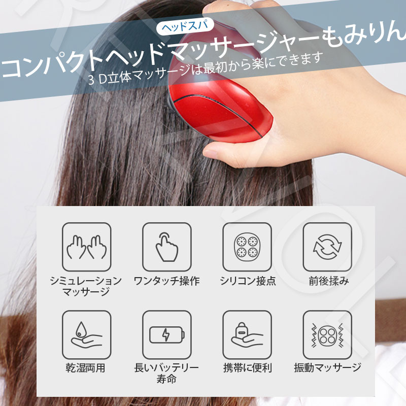 お風呂で使えるIP66防水仕様! 人体工学に基づいた形状、こだわりのシリコン素材 76個の接触点で指先のような使用体験 頭皮だけではなく、全身マッサージ可能 小型で携帯に便利なUSB充電式 ワンボタンで操作が使い方簡単 大切な人へのプレゼントに最適です。 長く座る生活の方や疲れている方、その他いろいろな人にぴったり!