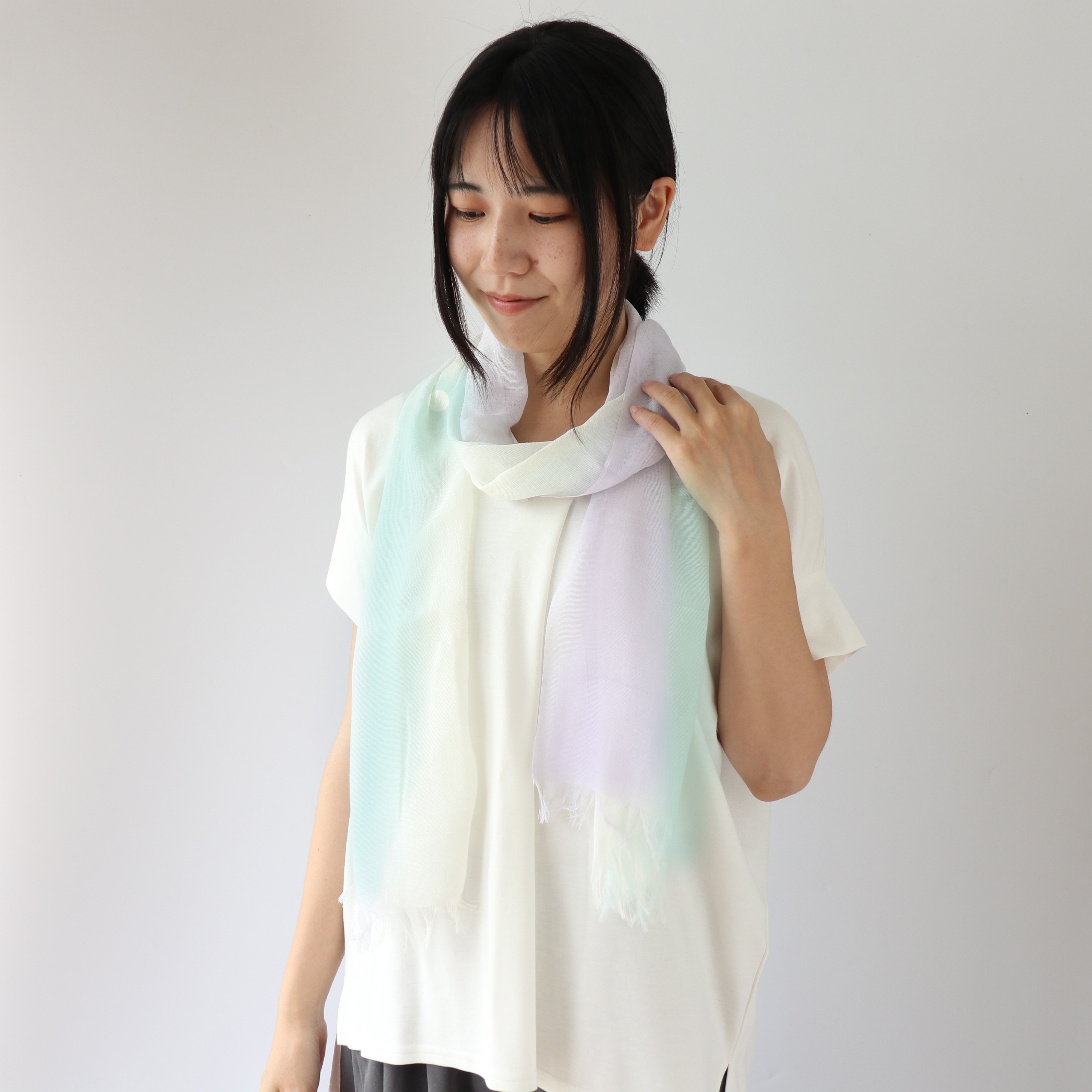 シルクと綿の組み合わせで、柔らかく肌触りの良いUVカット率95%のストール。UV対策と汗対策に優れ、快適な着け心地です。 さっと巻くだけで紫外線対策。吸水速乾で汗を吸ってもサッと乾きます。豊富な柄展開でファッションにも合わせやすく、顔周りを明るく演出します。