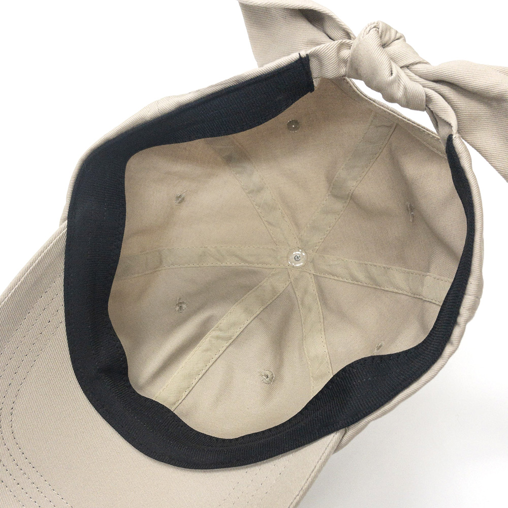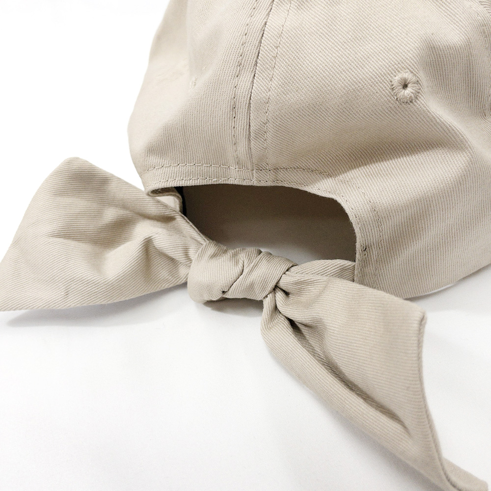 バックスタイルがキュッとリボン結びになったとっても可愛いキャップです。 カジュアルなのに女子力高めで普段のコーディネートに合わせて、可愛いカジュアルスタイルを楽しめます。 後ろのリボンは解けてサイズ調節も可能です。