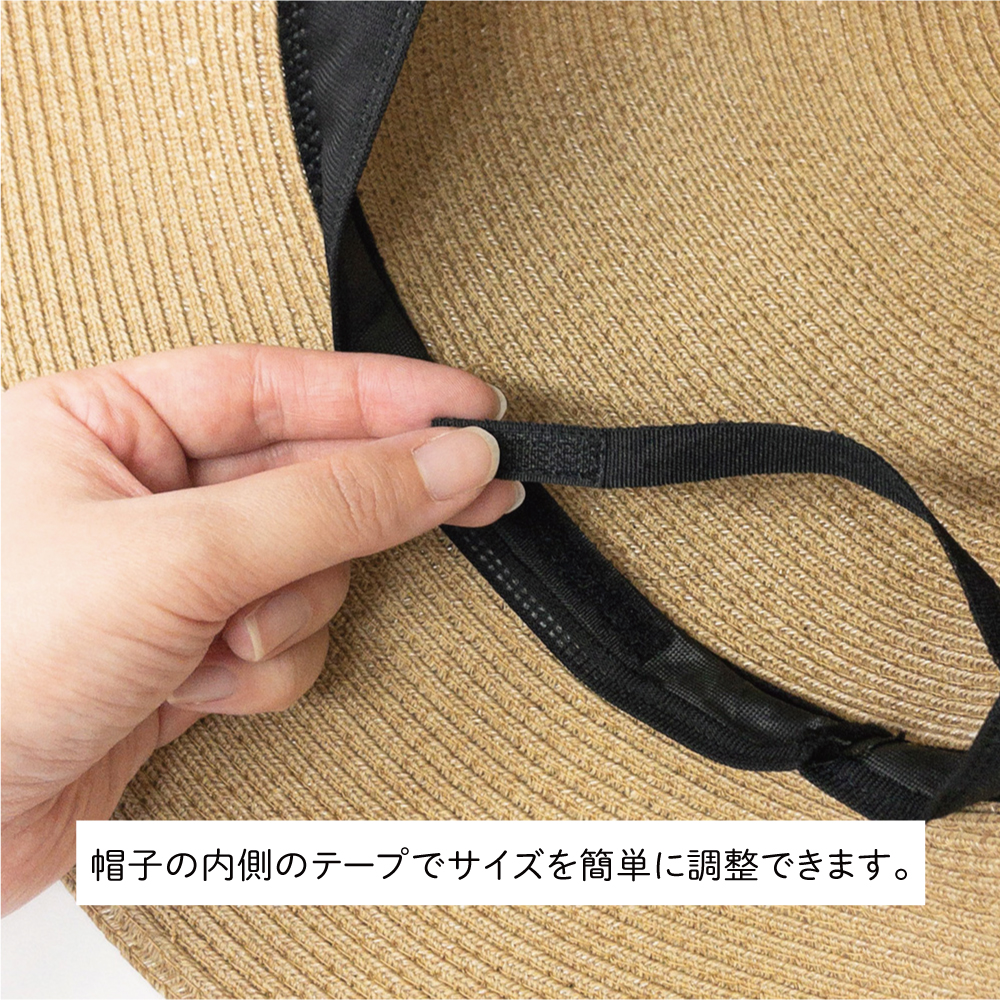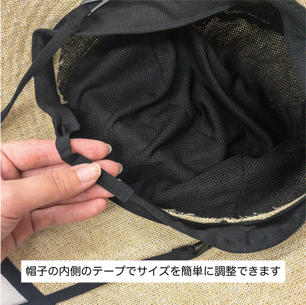 内側にはサイズ調整が可能なマジックテープ付き。 お好みのサイズで幅広くどなたでもかぶることができます。