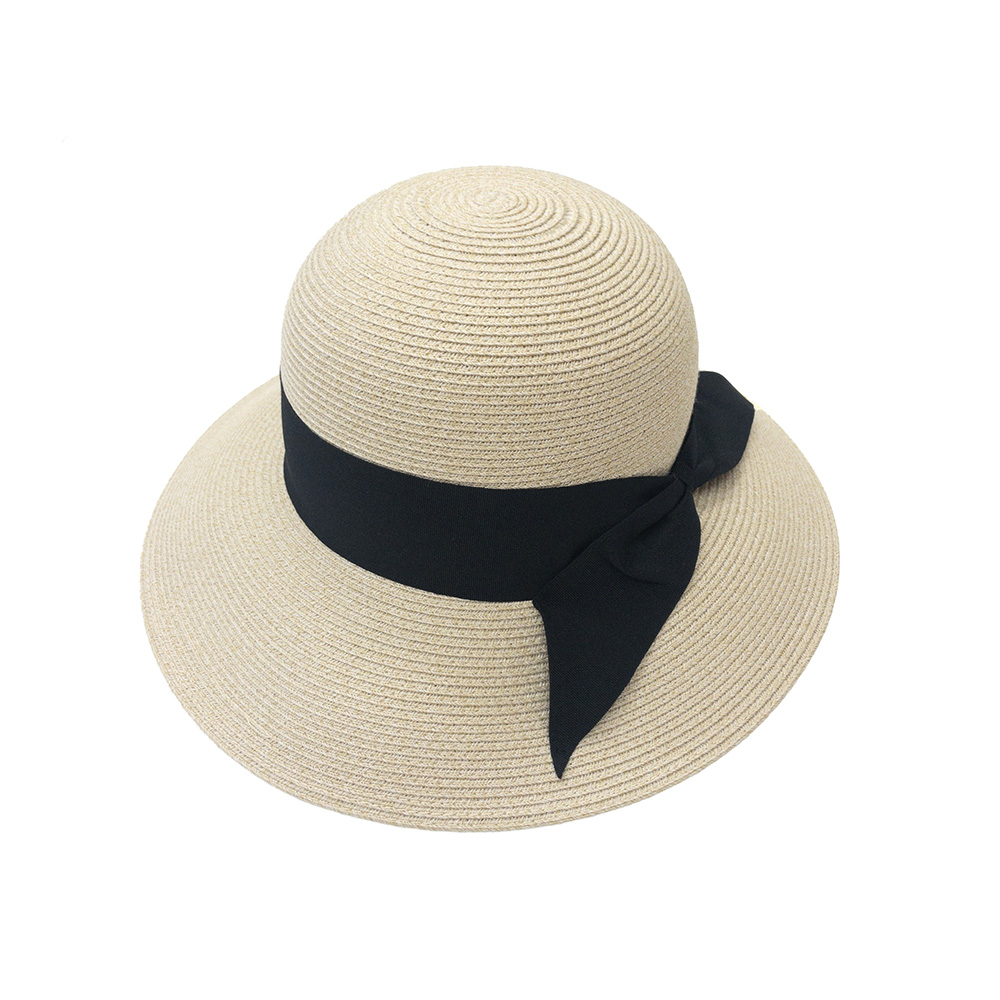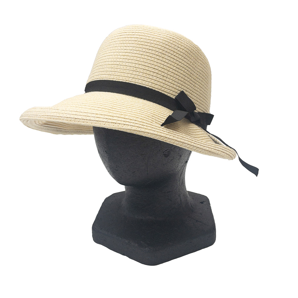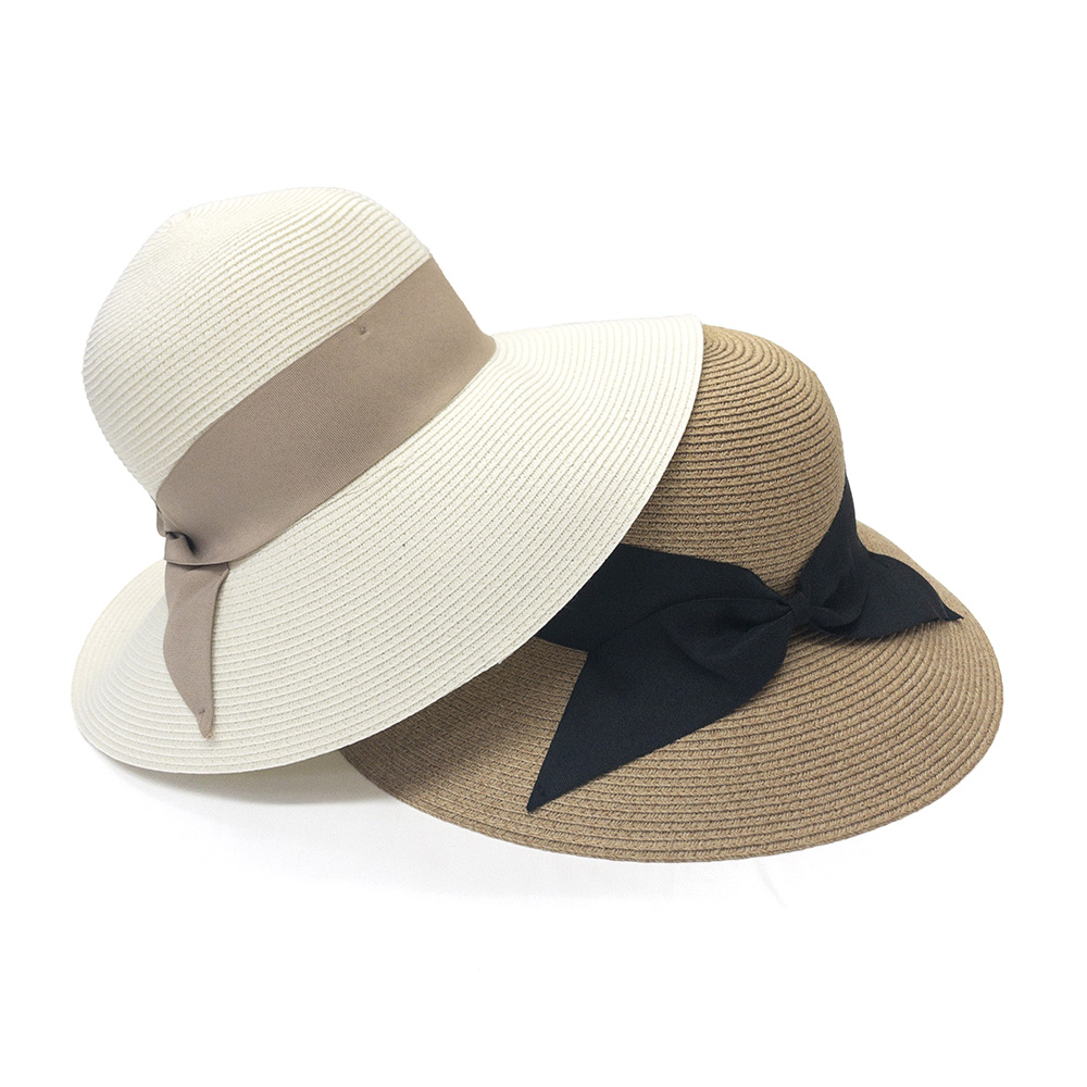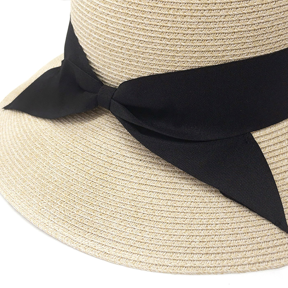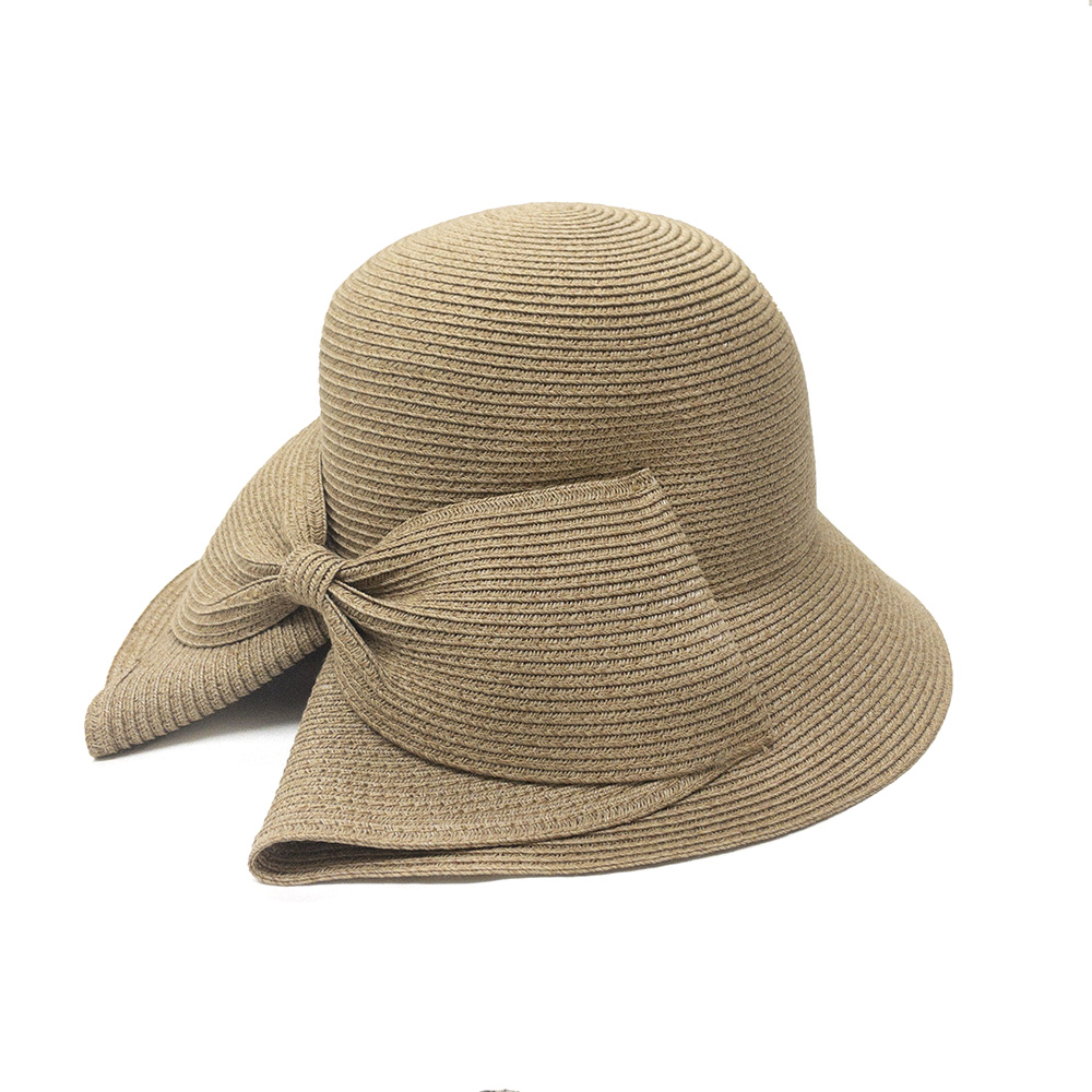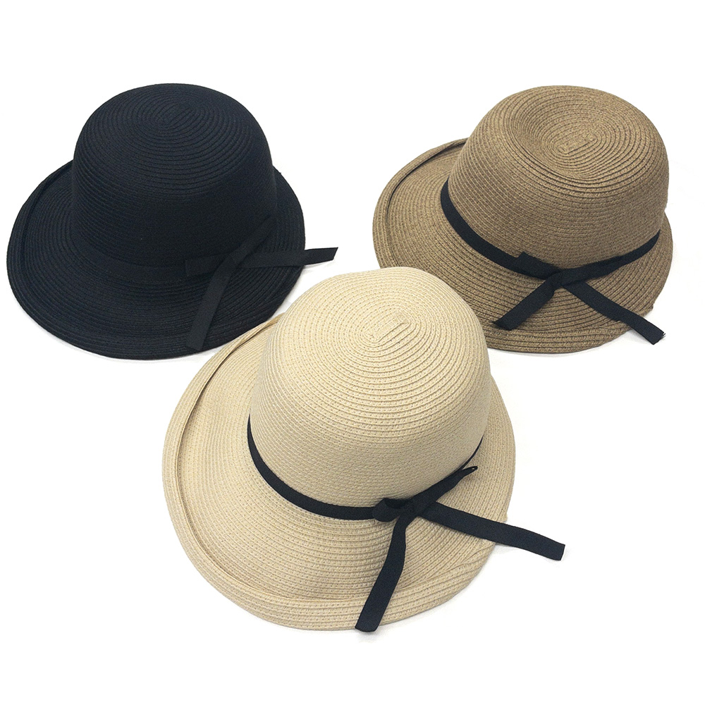 大きいリボンモチーフがかわいい涼しげな素材のブレードハット。ながいつばで顔だけでなく首まで紫外線対策も。うれしい自宅での手洗いもOK。