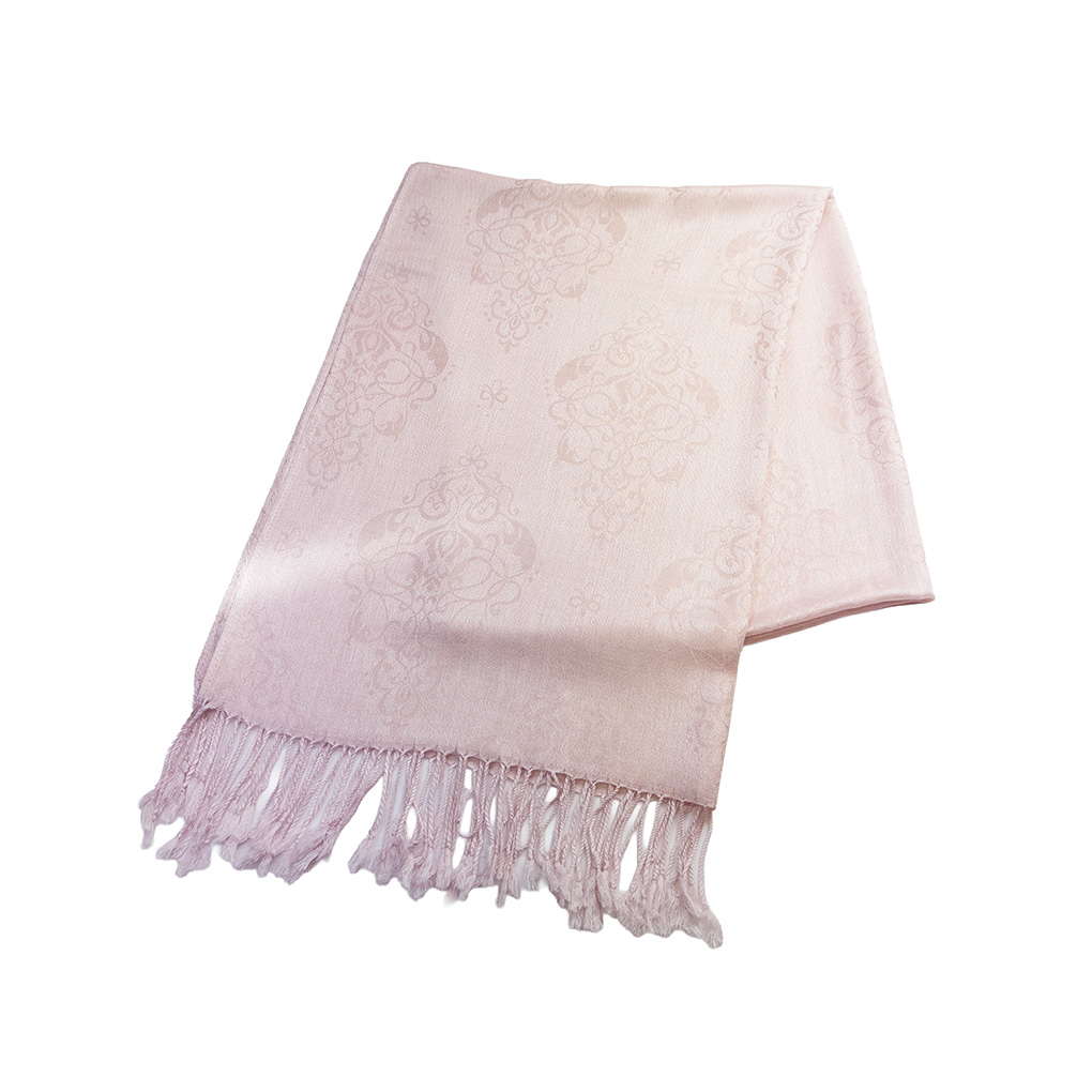 | パステルカラーの薄手ダマスクJQストール《UVケア》 | ◾️素材: アクリル、レーヨン ◾️サイズ:70cmx180cm+10cm |