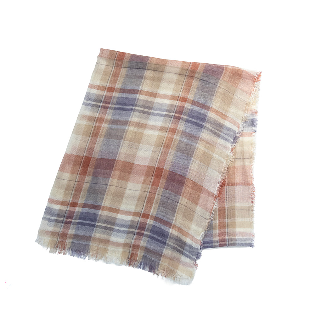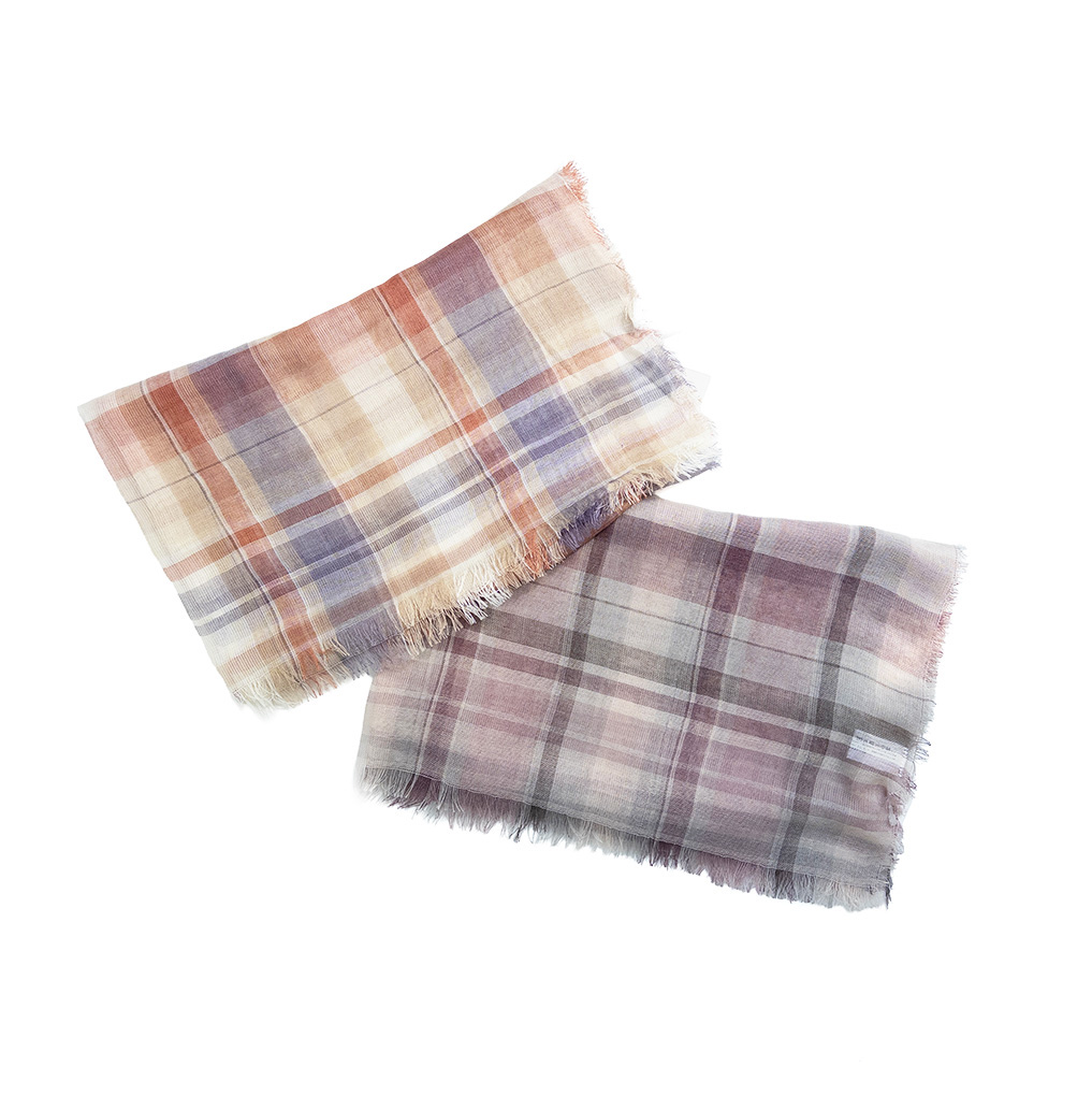 ふわっと軽いガーゼ風の素材が、強い日差しから首元をしっかり守ってくれます。 マドラスチェックの明るい色合いは、忙しい毎日のコーデにひと巻きするだけで気分まで軽くしてくれる存在。