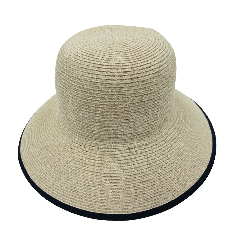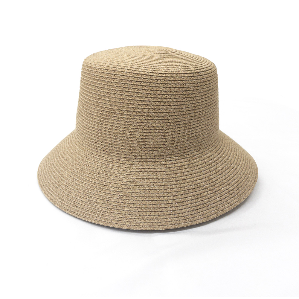程よく深くかぶれて安定感の出せるデザイン、どの角度から見ても綺麗なシルエット。 軽くてシンプルなブレード素材で見た目も涼しげな印象に。 顔まわりには傾斜のあるツバで紫外線対策にもなります。 内側にはサイズ調整が可能なマジックテープ付き。お好みのサイズで幅広くどなたでもかぶることができます。
