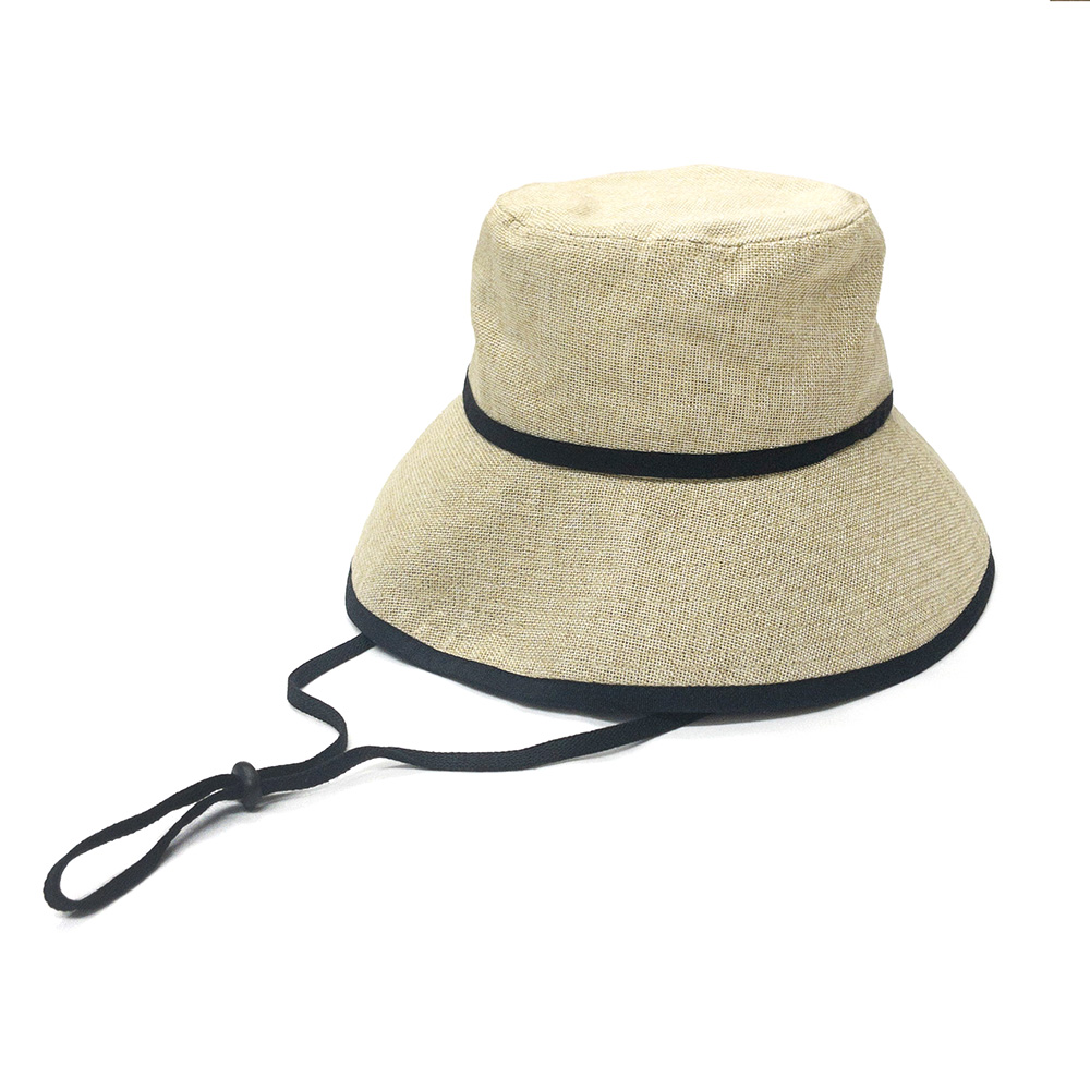 おしゃれに日よけをしてくれる涼しげなジュート素材のツバ広ハット。ポリエステルで作った麻風の生地で風通しがよく涼しくて広めのブリムが強い日差しからしっかり守ってくれます。