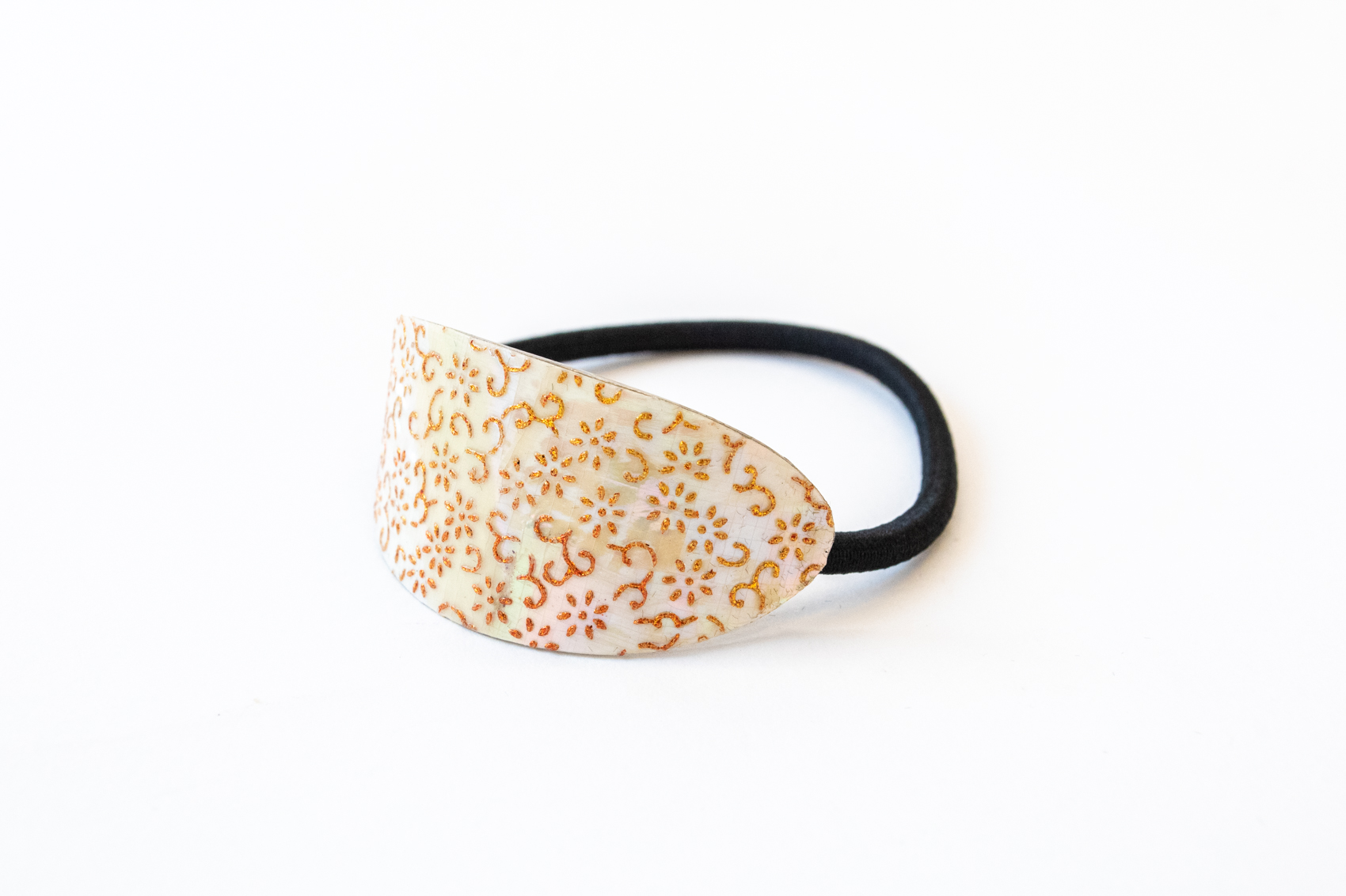 本貝螺鈿の上に、伝統的な小紋の箔押し技術を施しました。