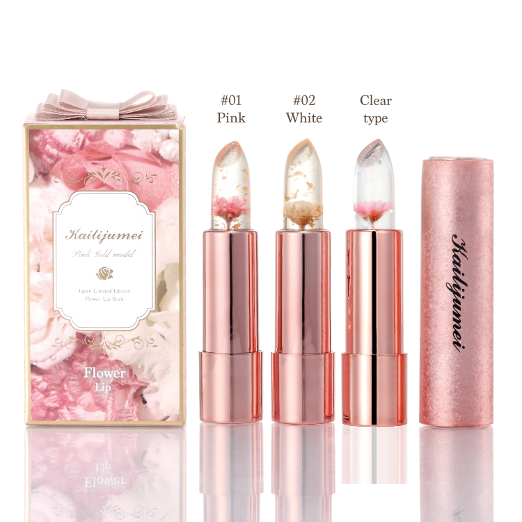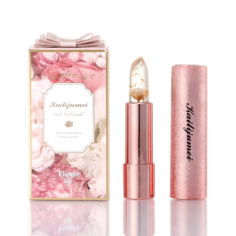また「Kailijumei フラワーリップ 日本限定ピンクゴールドモデル」は、植物由来の天然保湿成分(ローズヒップ油、ツバキ油/保湿)とトコフェロール配合(ビタミンE/保湿)を配合した、高品質な日本限定のモデルです。