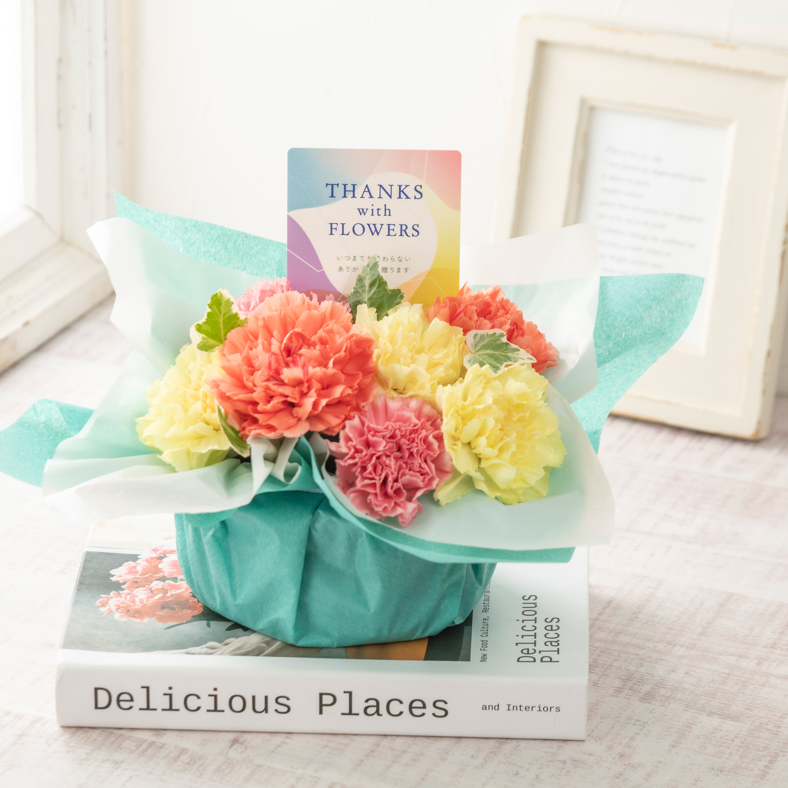 「THANK YOU」の可愛いピック付きで、日頃はなかなか伝えられない感謝の気持ちをさりげなくお届け。 お部屋に飾るだけで元気をもらえる、思わず笑顔になるような母の日の贈り物です。