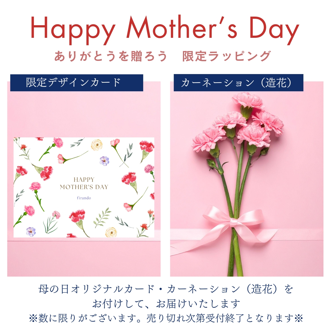 母の日ギフトにぴったりなラッピングを施してお届けします。 「いつもありがとう」の気持ちを込めて、大切なお母様へギフトを贈ってみてはいかがでしょうか。 ※数に限りがございます。売り切れ次第受付終了となります。