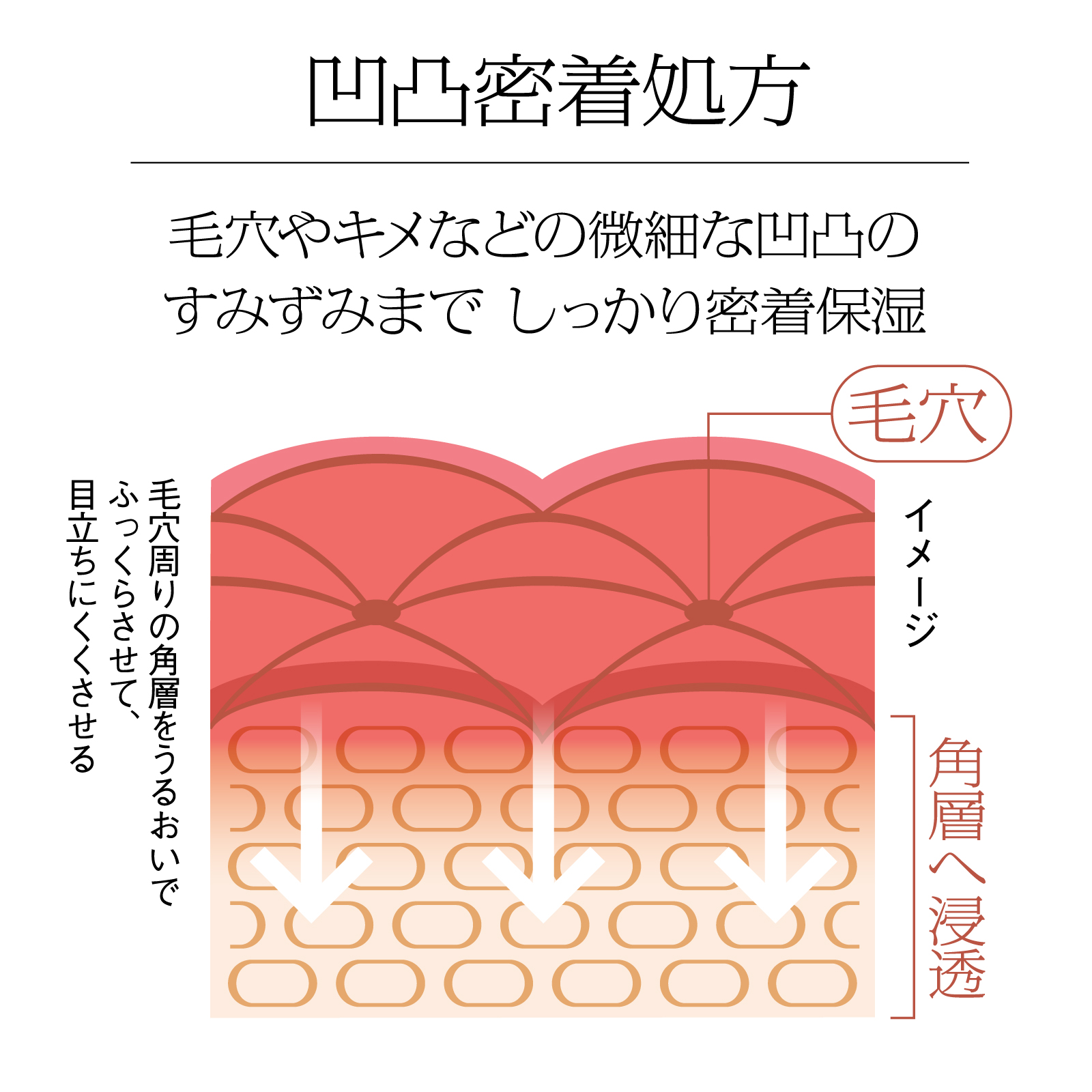 年齢とともに気になり始める、毛穴の目立ちや肌のハリ不足。そんな大人の肌悩みにまっすぐ向き合うのが、この「ハリ弾力注入美容液」です。肌のキメや毛穴などの細かな凹凸にまでピタッと密着し、豊かな潤いを角層のすみずみまで届けます。