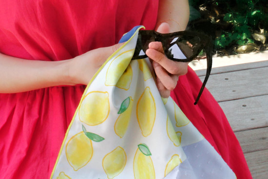 フルーツをテーマにした眼鏡やサングラスが拭けるハンカチです。