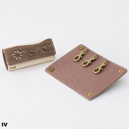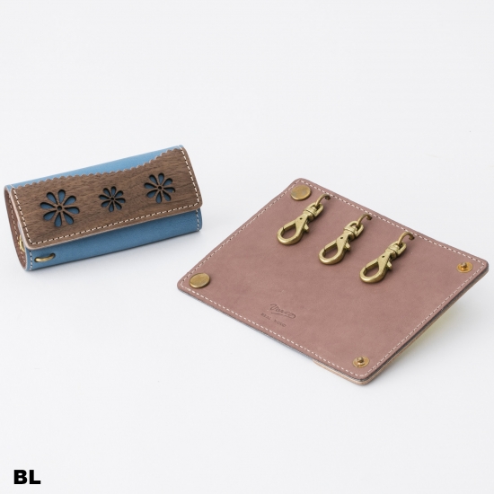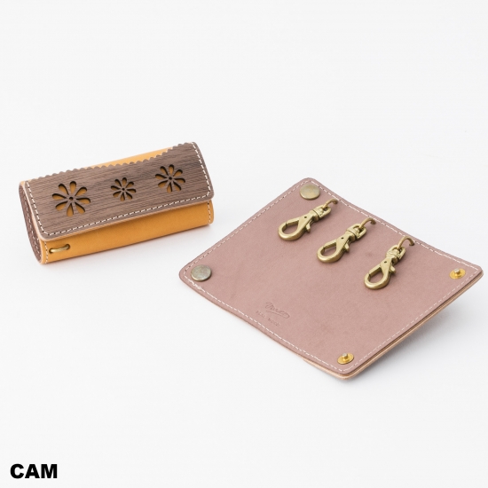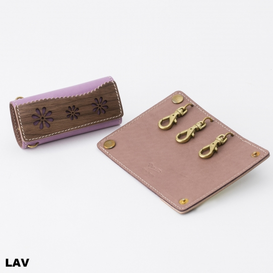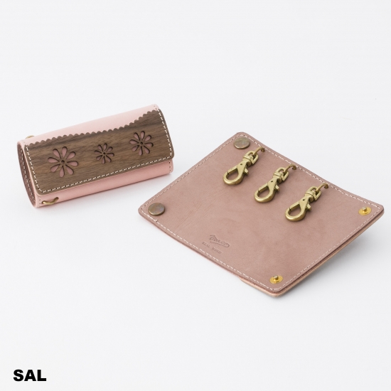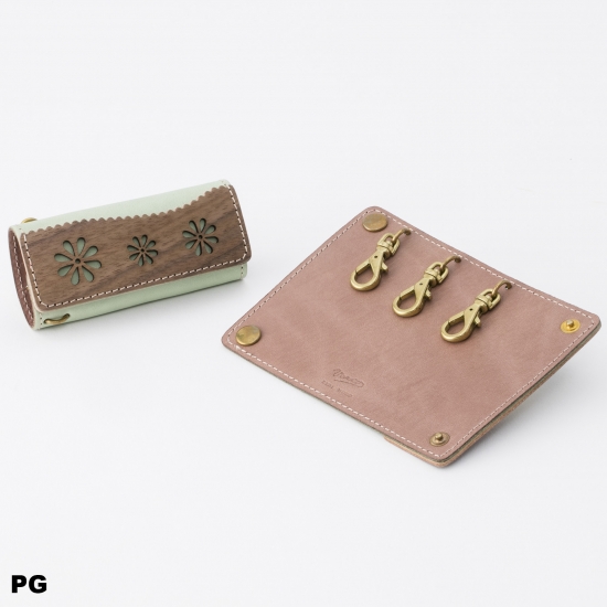 柔軟に曲がるウッド素材に繊細な花柄パンチングを施した「フルール」シリーズのキーカバー。レザーはきめが細かく上質なキップレザー(若年の牛)を使用しています。レギュラーの商品に使われているレザーよりも、より素揚げ調でナチュラルな仕上がりとしました。淡く落ち着いたカラーと花柄パンチングがスペシャルにカワイイ、ジャパンメイドの特別なキーカバーです。外側ウッドポケットは駐車券やレシート入れにご利用いただくと大変便利です。