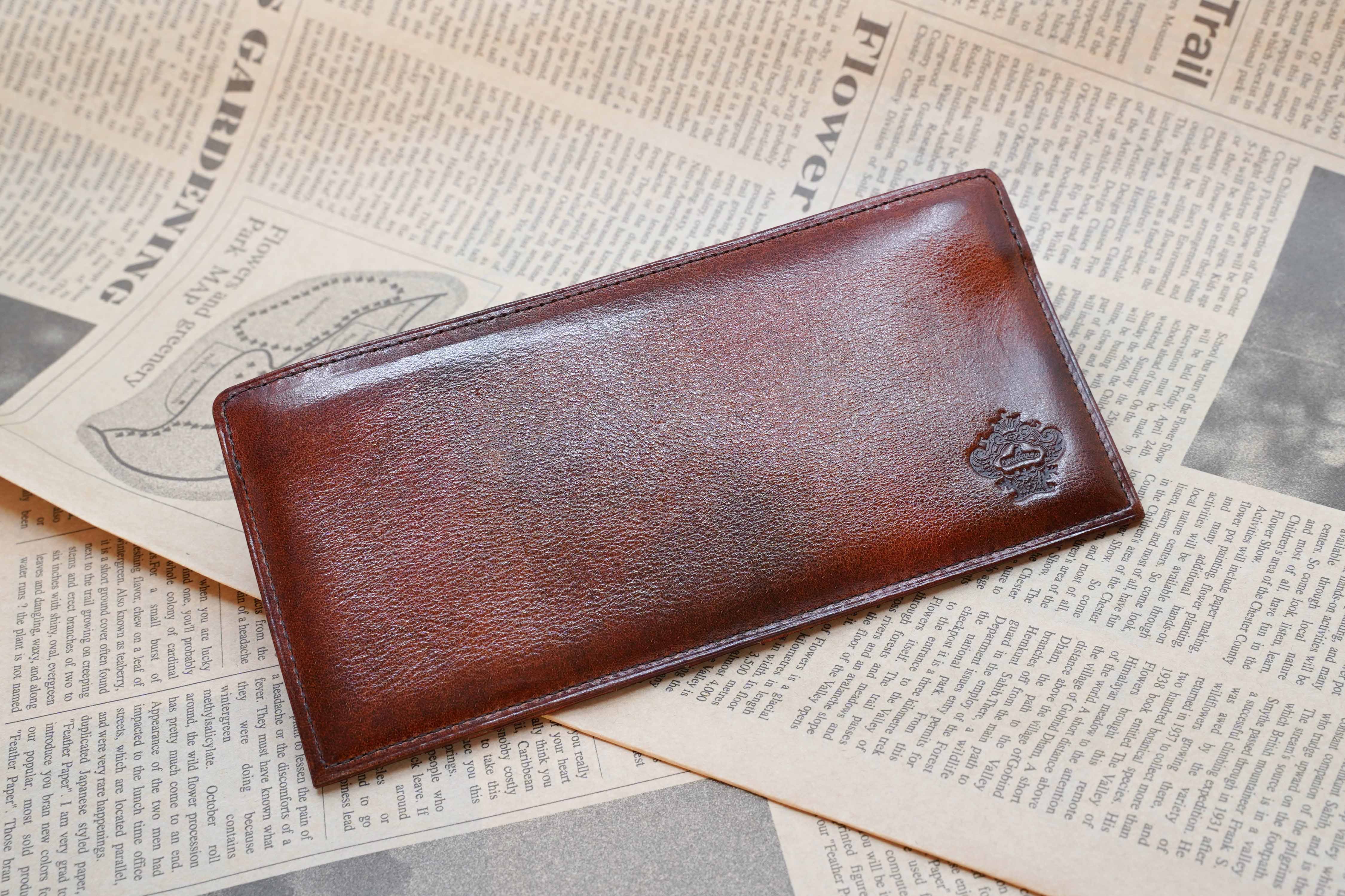 イタリアミラノの新進ファクトリーブランド【Orobianco】のPATINA F付き長札入れです。