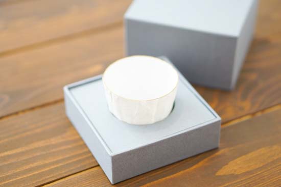 縁にあしらわれたゴールドで、華やかさとかわいらしさを演出します。女性への贈り物にいかがでしょうか?