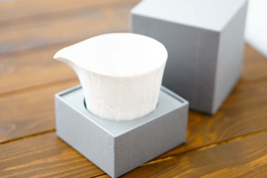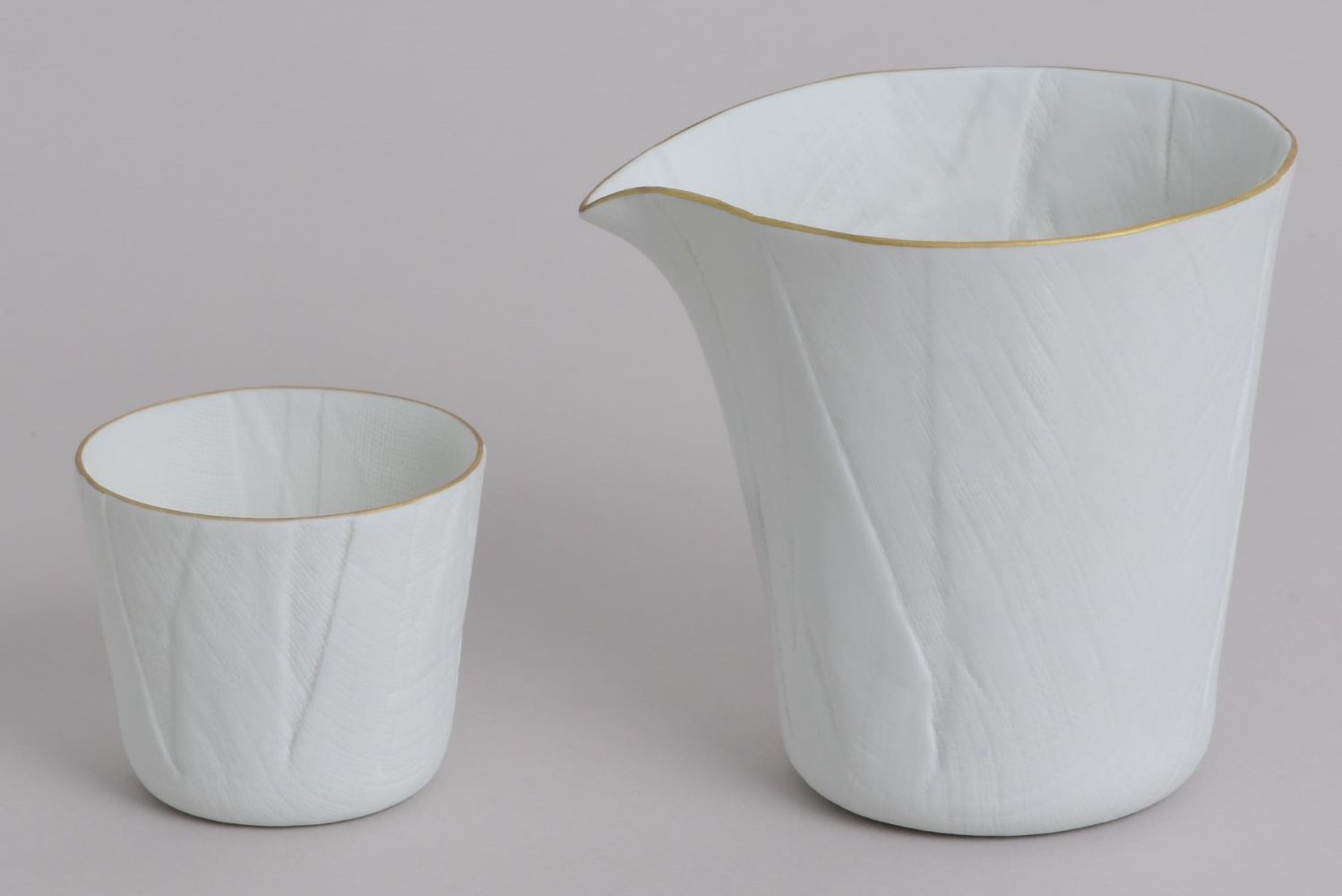 上品な白色の磁器の片口とグラスのセットです。布のような手触りと、驚くほどの軽さと薄さが魅力。冷酒を片口に注ぎ、グラスで味わい頂けます。プレーン・ゴールド・プラチナの三色をご用意。日本酒が好きなご友人や、お世話になっている方への贈り物にいかがでしょうか?