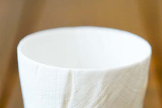 大口注文・法人のお問い合わせはこちら布の真似をした磁器」という意味の、「ceramic mimic fabric」ブランド。文山窯に伝わる伝統技法「てびねり」を、現代に進化させた独自の製法で、まるで布のような優しく、驚きの軽さ、薄さを実現しました。日常に使用できる強度です。