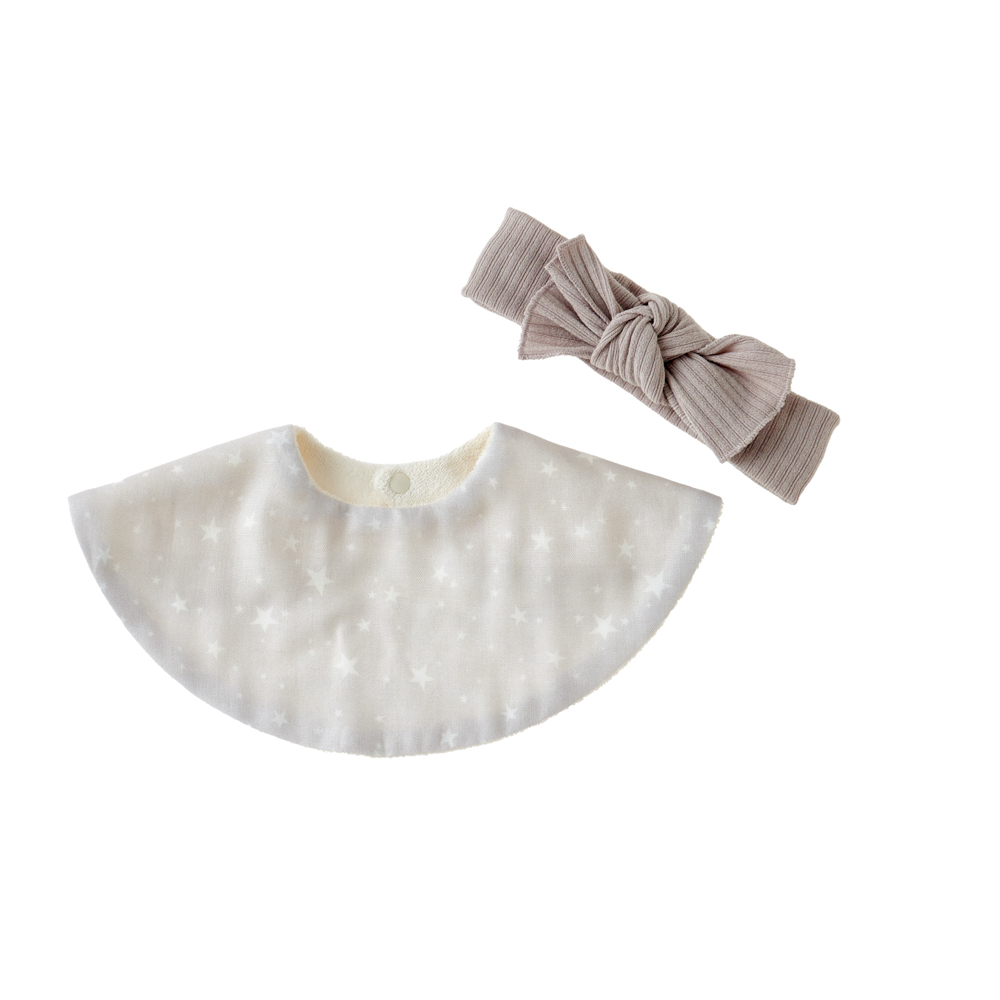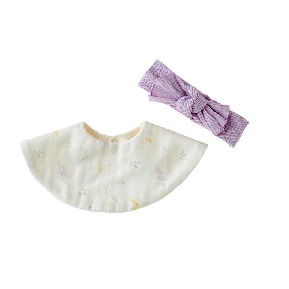 女の子ベビーに人気のガーゼスタイとヘアバンドのセットです。 このセットを付けるだけで可愛らしい華やかなスタイルが完成します。 普段使いはもちろん、お出かけの時のおしゃれ着としても活躍します! 特別なセットをプレゼントしてみてはいかがでしょうか。