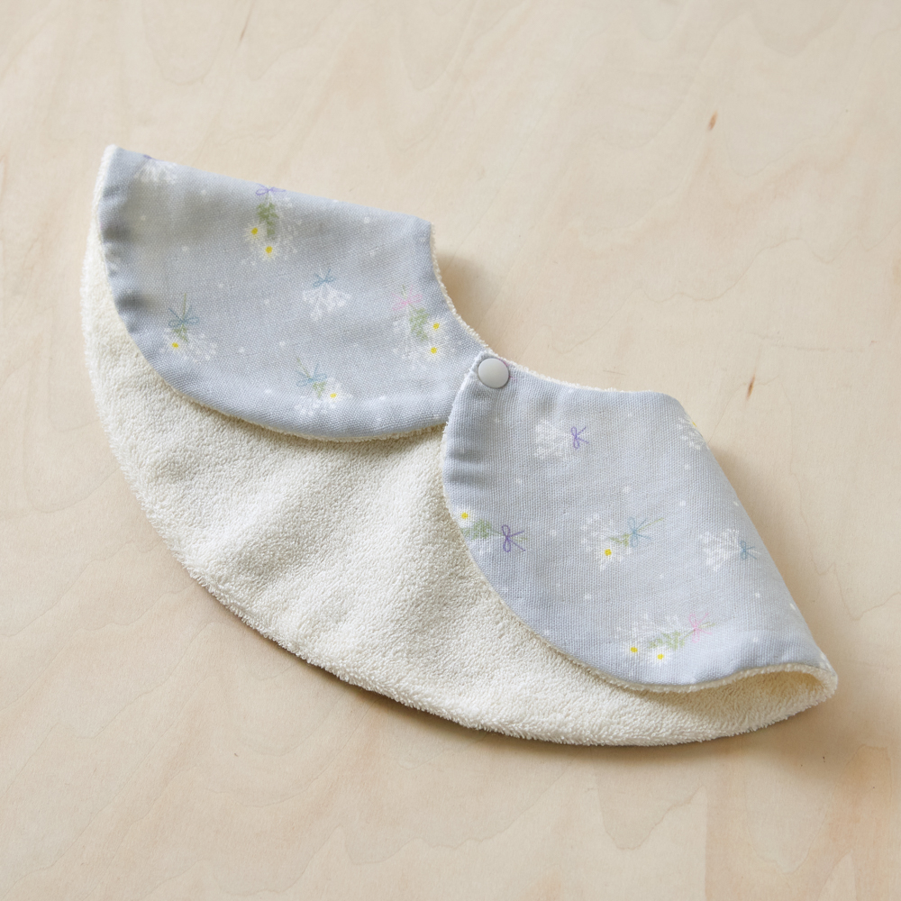 どんなお洋服にも合う、まあるいシンプルで使いやすいスタイです。 吸水性のいいダブルガーゼ仕上げなので、汚れも食べこぼしもしっかりキャッチ! 赤ちゃんの肌を傷つけません。 スナップボタンだからワンタッチで留めやすいのも魅力です。 しっかりした縫製の日本製です!