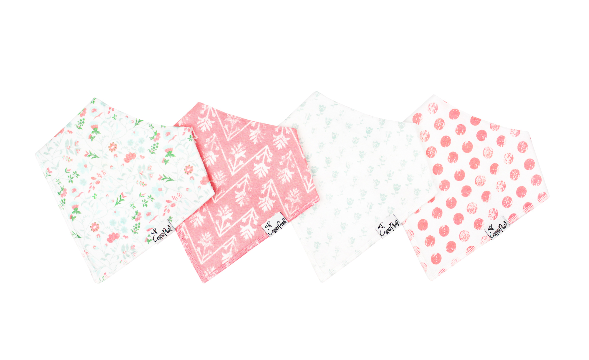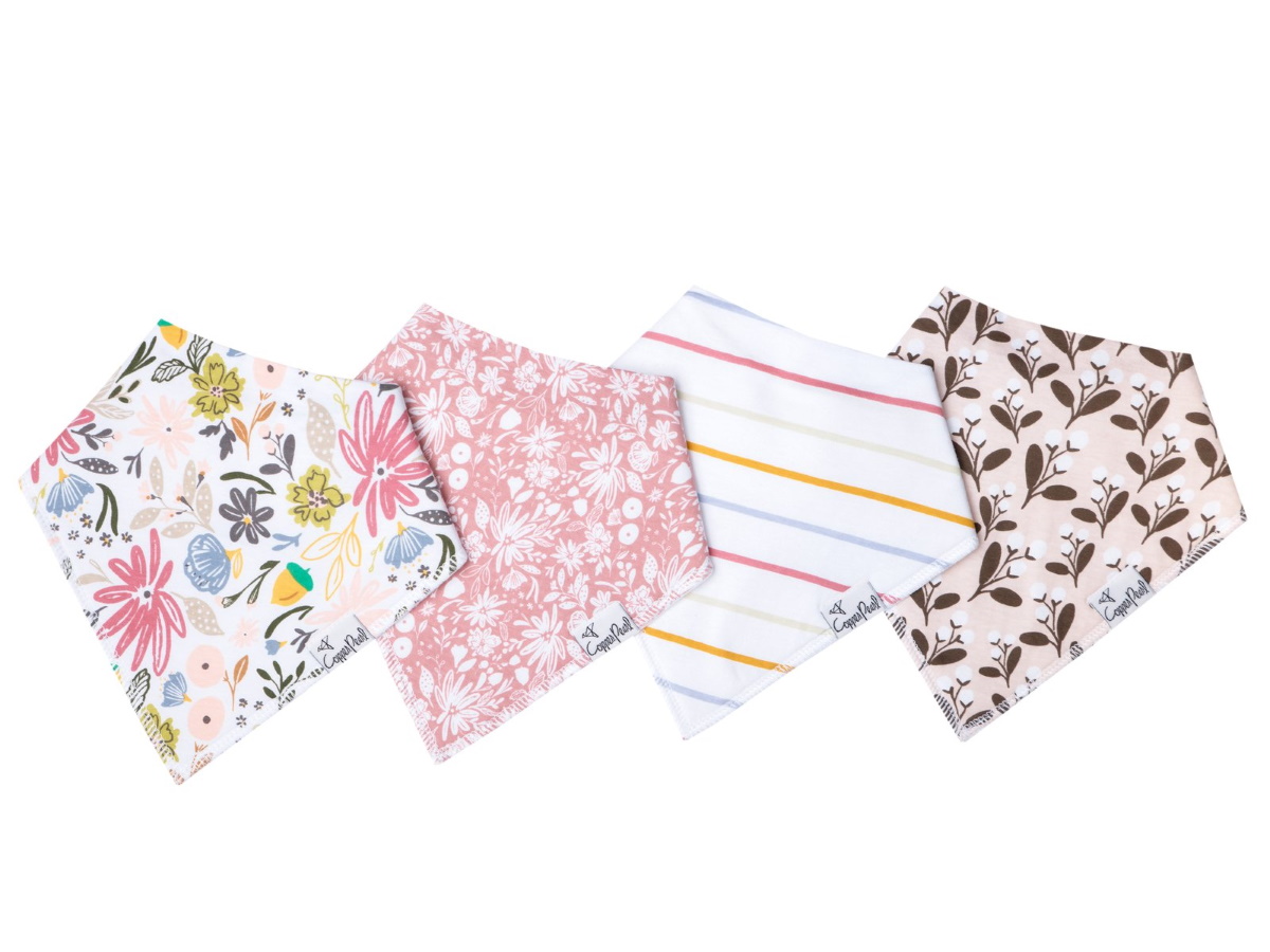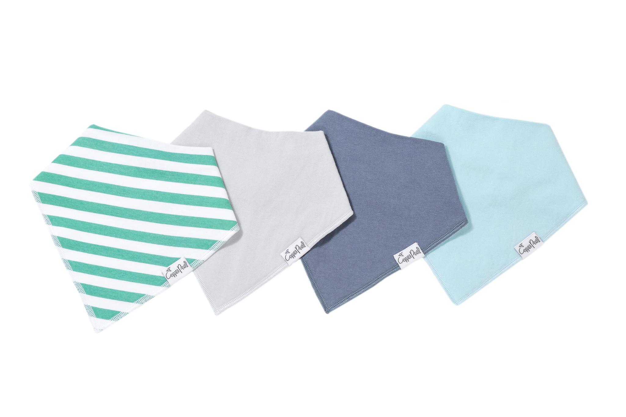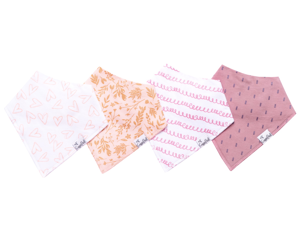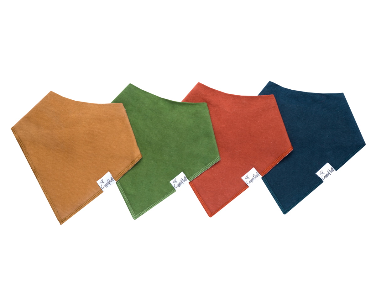 コッパーパールのバンダナビブの特徴は、最先端の流行を取り入れたオリジナルデザインの生地にあります。何にでも合わせ易く、どんなスタイルにもベストな仕上げのワンポイントになってくれます。