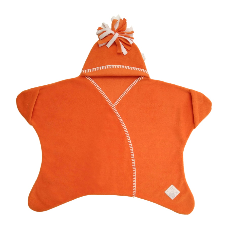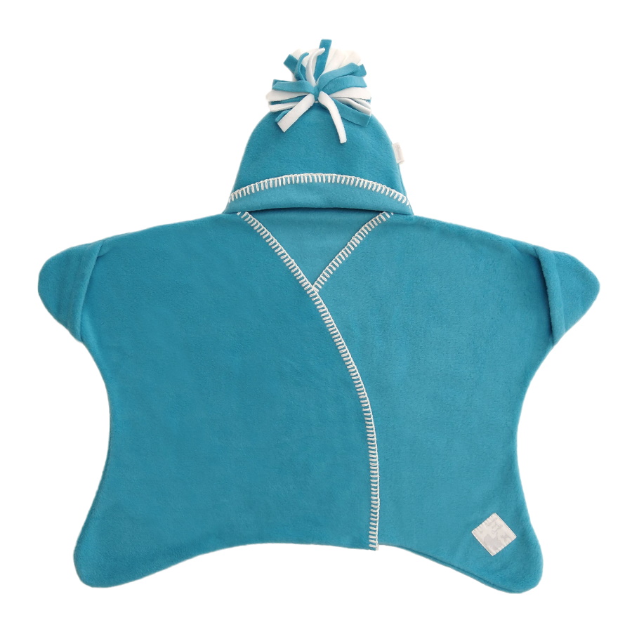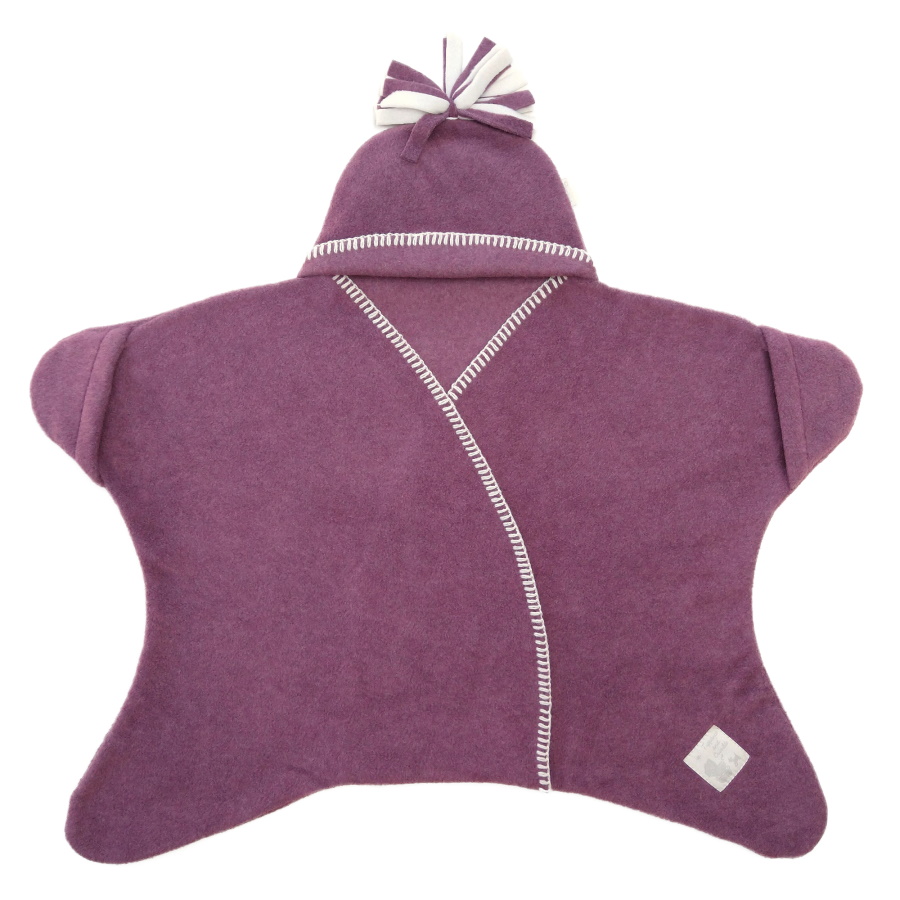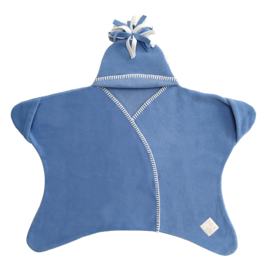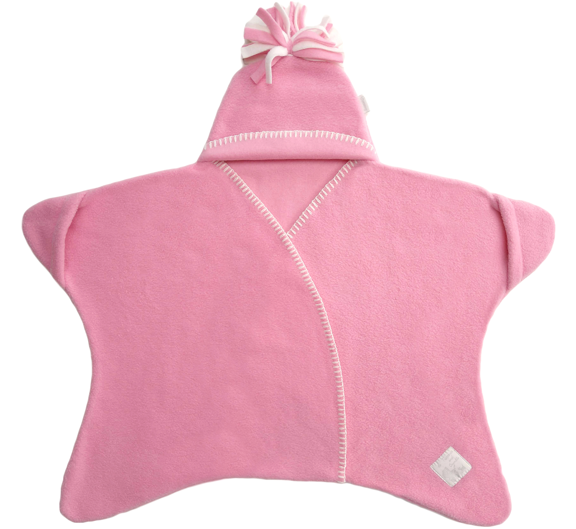 大口注文・法人のお問い合わせはこちら両手を広げると星になった様な赤ちゃんの姿がとっても可愛らしいおくるみです。ファスナーやボタンが無いので着脱が簡単です。新生児~生後4ヶ月頃の赤ちゃんのおくるみや防寒アイテムとして活躍します。