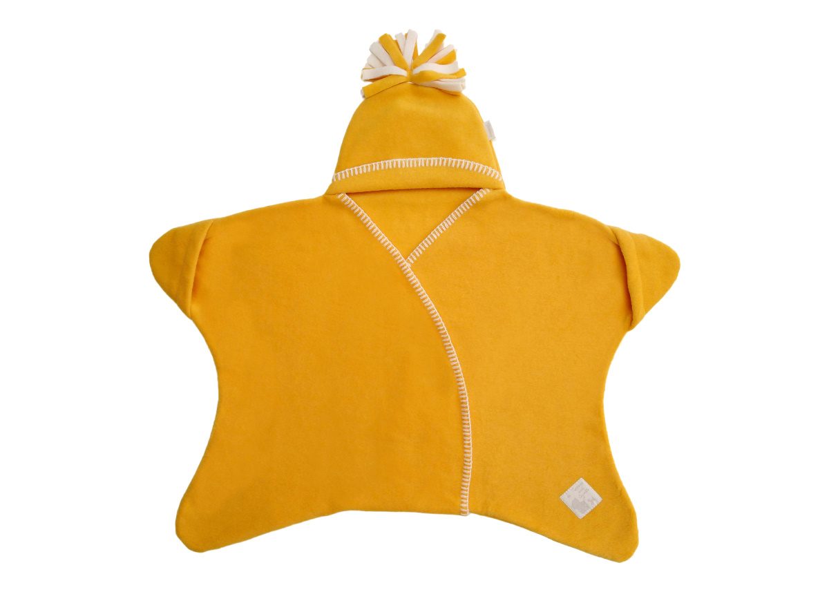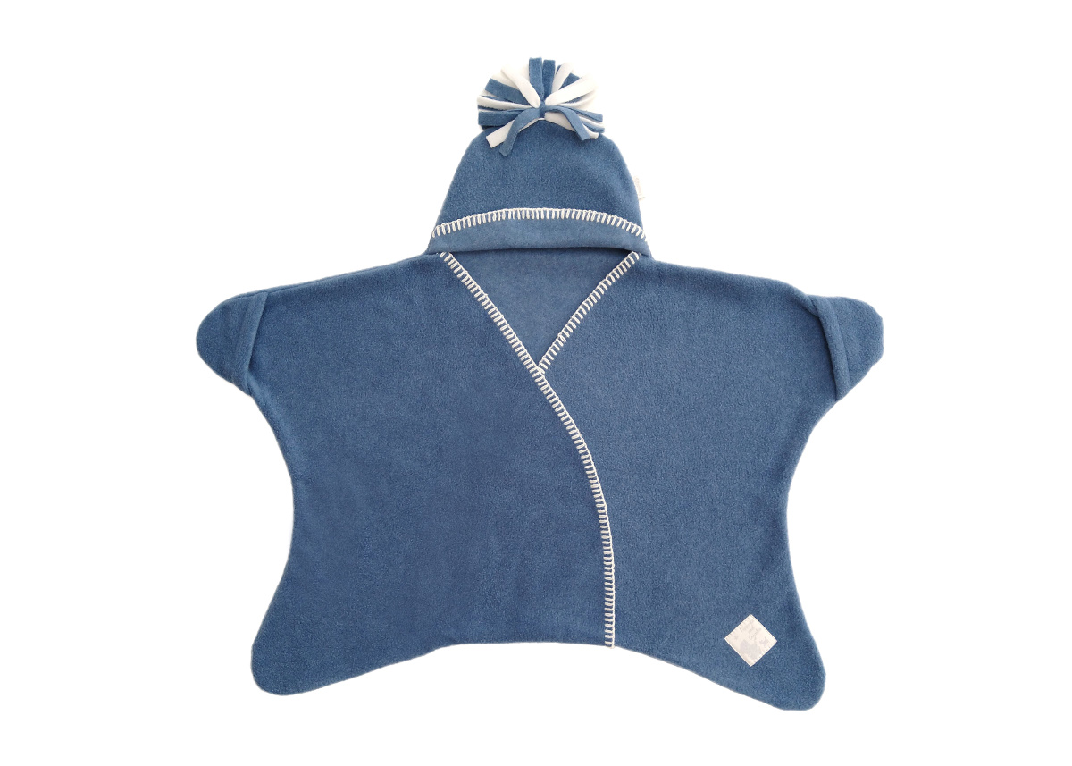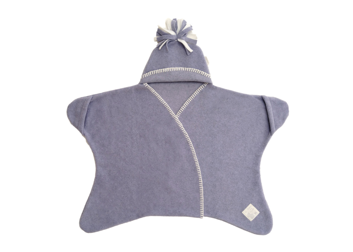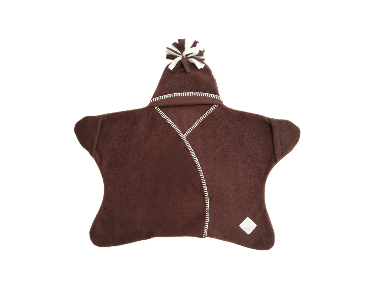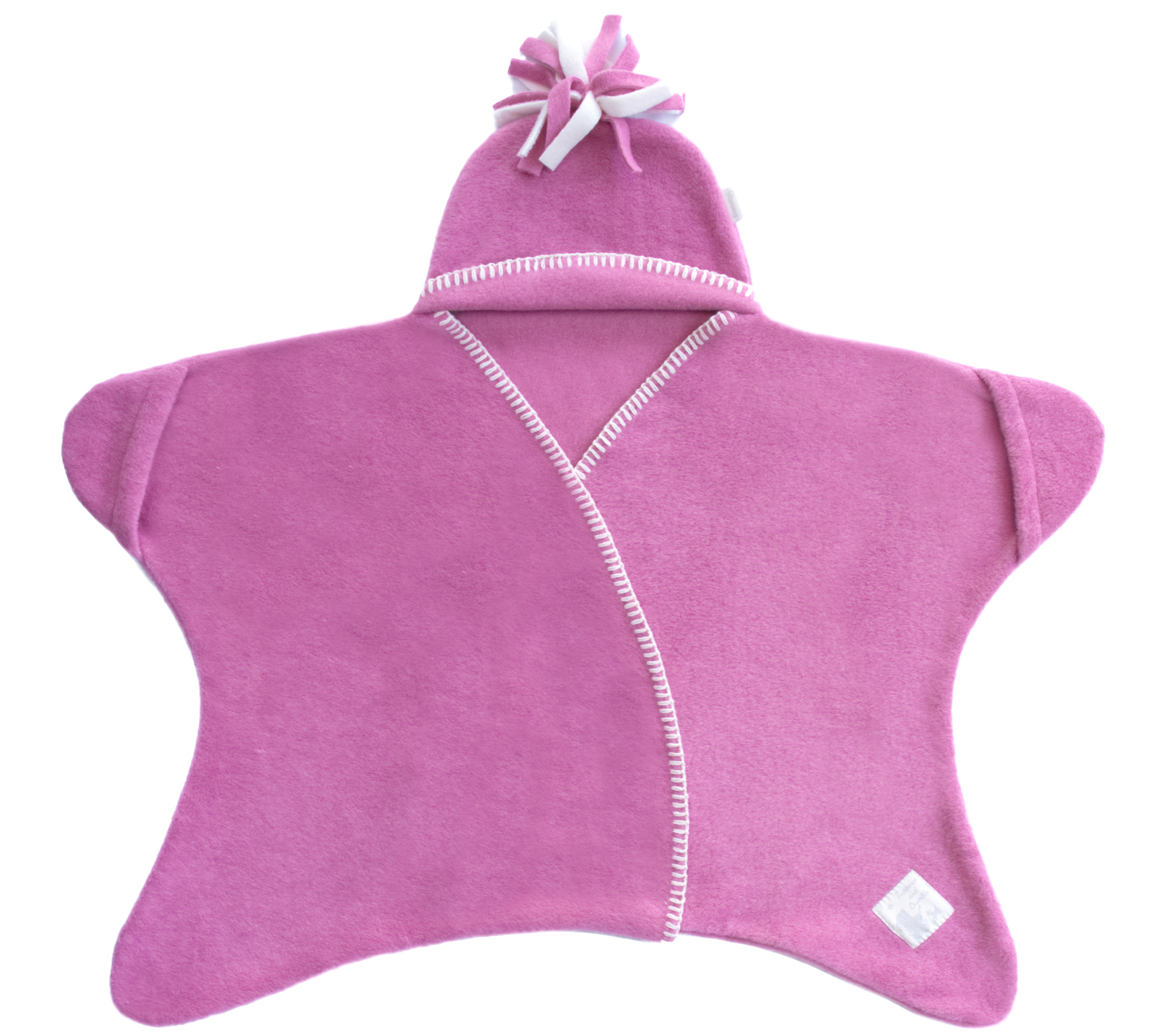 大口注文・法人のお問い合わせはこちら両手を広げると星になった様な赤ちゃんの姿がとっても可愛らしいおくるみです。ファスナーやボタンが無いので着脱が簡単です。新生児~生後4ヶ月頃の赤ちゃんのおくるみや防寒アイテムとして活躍します。