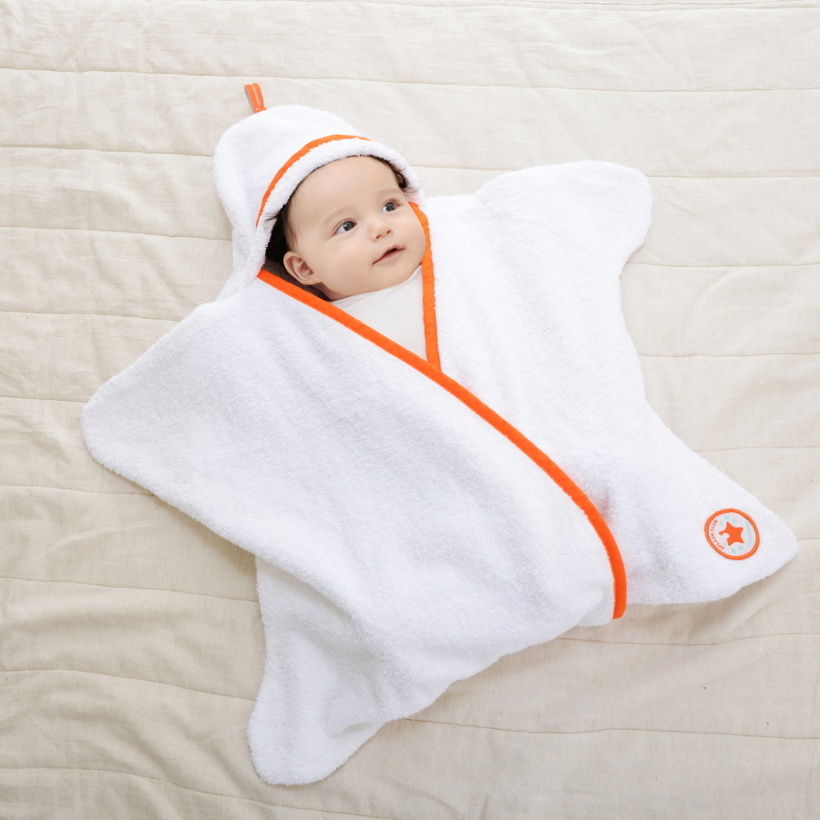 お風呂上がりや、スイミングの後など体が濡れている時に包み込んで拭いてあげれる「星型アフガン スターラップ スプラッシュクラブ Starsnug 0-4M」です。スターラップの素材は、赤ちゃんにも安心な柔らかいコットン製のタオル地でできています。