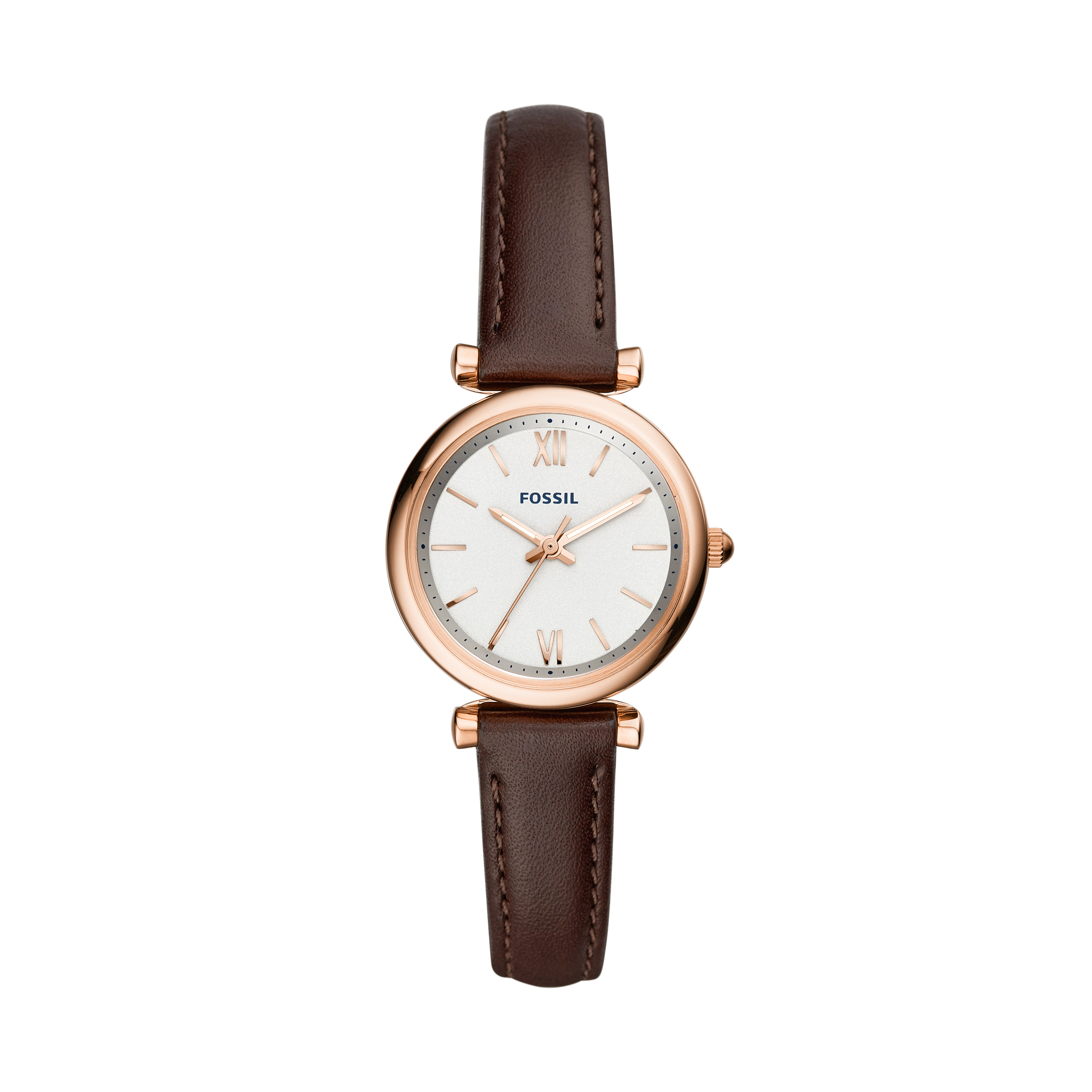 1984年に、アメリカのダラスで創業したFOSSIL【フォッシル】の洗練されたシンプルなCARLIE MINI 三針 ブラウンレザーウォッチです。