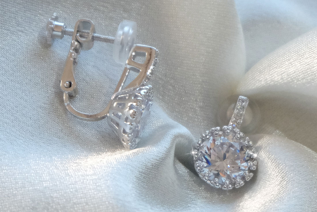イヤリングには長時間つけていても痛くなりにくいシリコンカバーと・装着が簡単なバネ、調節可能なネジが付いております。