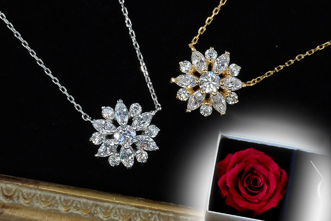 より美しい輝きを実現するため、最高級のカットグレードである「エクセレントカット」を採用しました。またチェーンやペンダントトップにもこだわり、プラチナ仕上をしています