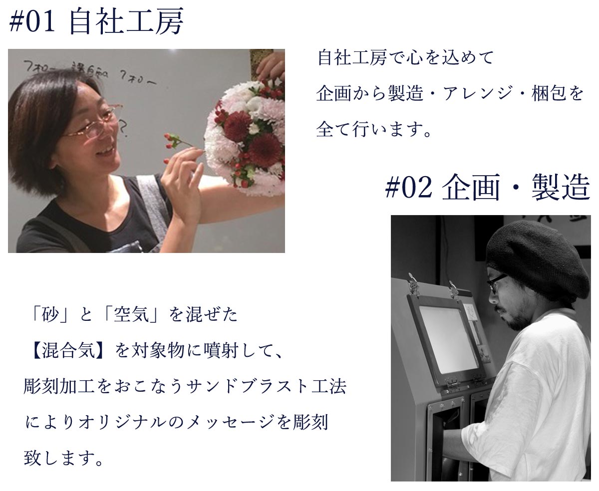 お花をカバーするガラスにオリジナルのメッセージを彫刻いたします。