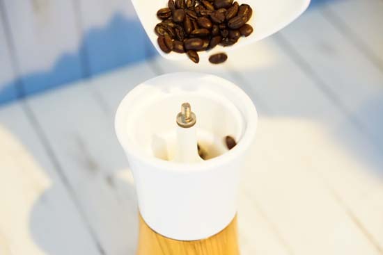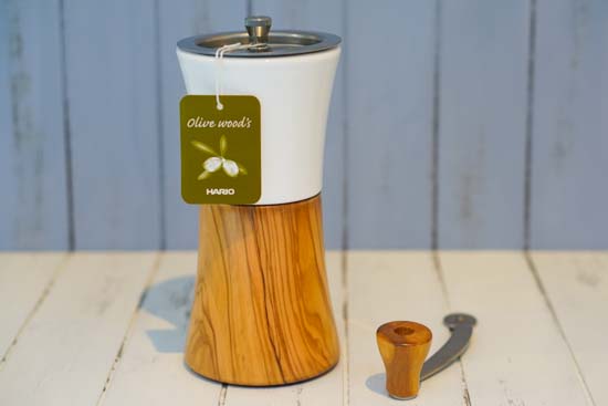 美しい曲線のデザインで、手にとったときにしっくりと馴染みます。セラミック製ホッパーに、天然のオリーブウッドの粉受けの組み合わせで、ナチュラルでお洒落な印象。キッチンやリビングなど、どんな場所のインテリアにも溶け込みます。