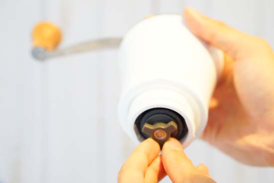 豆の挽き目の調整は、内側のダイヤルを動かすことで可能。豆の挽き刃はセラミック性なので取り外して簡単に洗うことができます。上質なミルをコーヒー好きなご友人や、お世話になっている方にプレゼントしてはいかがでしょうか?