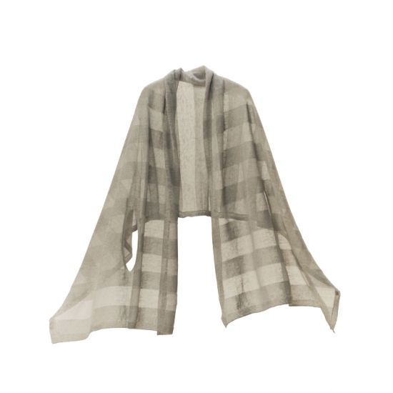 長方形のニット地の両端に2個のスリットの入った使い勝手の良い羽織るタイプのポンチョです。 首元から二の腕までをしっかりとカバーし日焼け対策、冷房対策に効果的です。 また首に巻くなど、シーンによって使い分けることができます。 天然素材の中でも最も涼しいと言われる麻を使用して作られています。