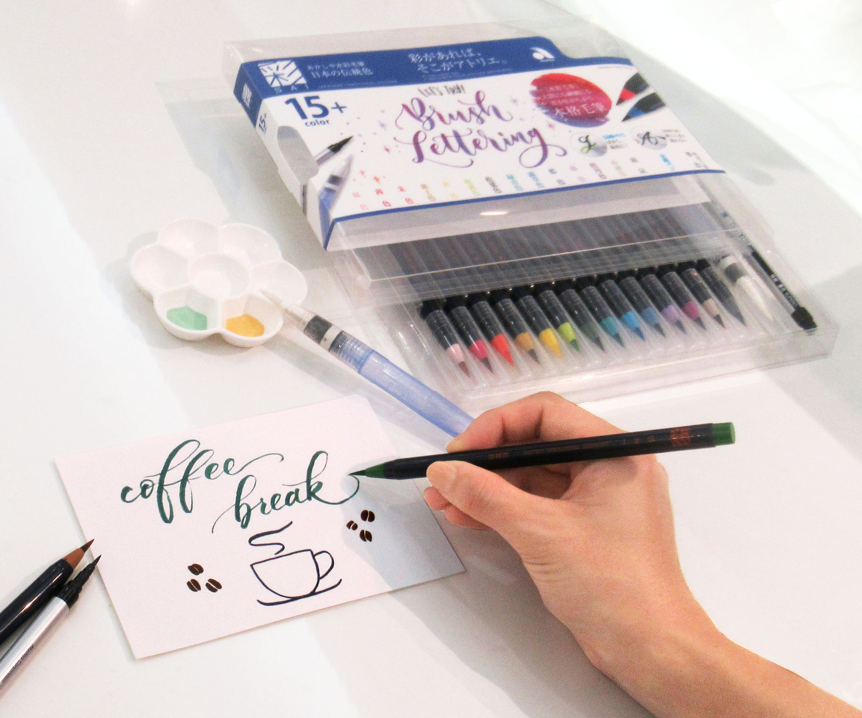 大口注文・法人のお問い合わせはこちら「水彩毛筆」14色に「水筆ペン」「極細毛筆」がついた、思うままに水彩を楽しめるセットです