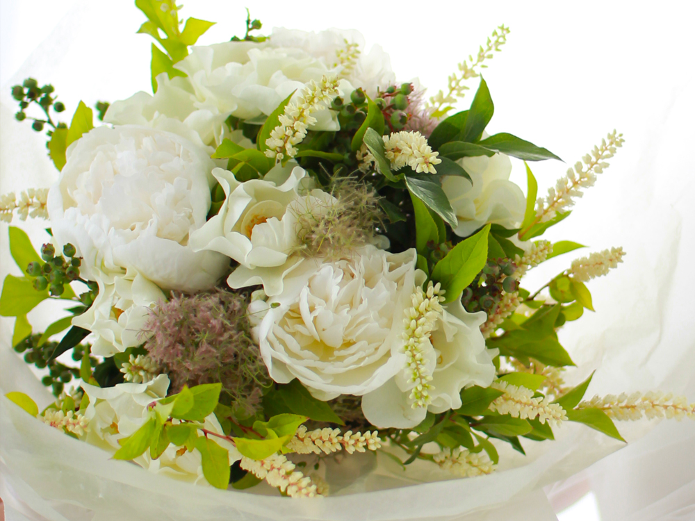都会的ながらも、野生の草花の優雅さを感じさせる繊細なブーケ。記念日にぴったりな優しいフレッシュフワラーのブーケで、大切な方のお祝いをされてはいかがですか?