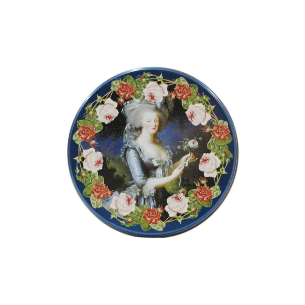 青のパッケージ(丸缶)には、気品溢れるマリーアントワネットの肖像画と、植物画家として名高いルドゥーテの薔薇をあしらい、「バラの花びら」を練りこんだアロマの香りあふれる【ローズ】と、「スミレ(紫)の花びら」を練りこんだ【ヴァイオレット】のフレーバーを各4粒ずつ(合計8粒)をお詰めしました。 Photo (c) RMNーGrand Palais(musee du Louvre)/Madeleine Coursaget/distributed by AMF-DNPartcom
