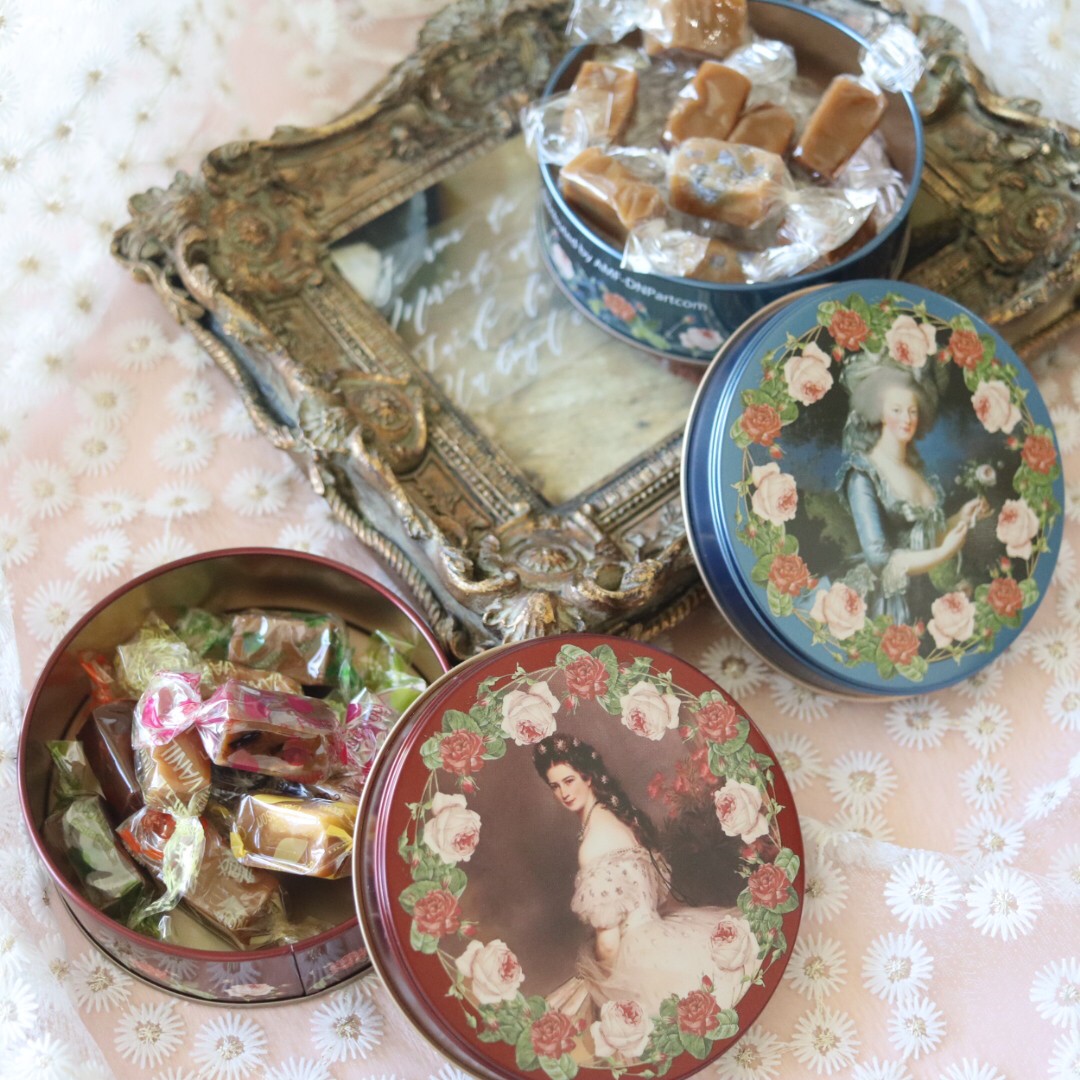 フランスAOP認証発酵バターをふんだんに使用した風味豊かなキャラメル。口に入れた瞬間に広がる芳醇なバターの香りや口どけの良い柔らかな食感も魅力。人気のマリーアントワネット、エリザベートの肖像画をあしらった丸缶に厳選したフレーバーをお詰めした一品です◎