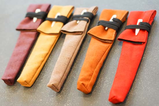 専用の布ケースは、友禅染めの生地を使用し、扇子入れ袋の形態で製作されています。伝統を感じさせつつ、シンプルで落ち着きのあるオリジナルの工夫が光る布ケースです。丁子茶(ちょうじちゃ)・焦香(しょうこう)・黄土(おうど)・臙脂赤(えんじあか)・鳩羽紫(はとばむらさき)・墨黒(すみくろ)・淡紫(あわむらさき)柄の7種類からお選び頂けます。(色・柄の出方が異なる場合がございます)