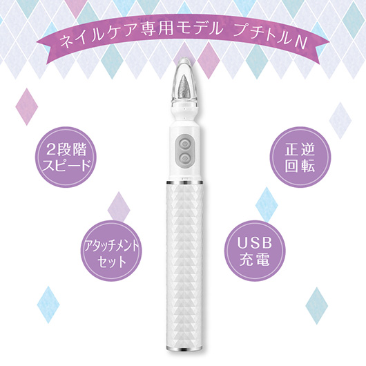 プチトルは、ネイルサロンが開発した小型で軽量なボディながらもパワフルさを残した、USB式ネイルマシンです。安全性が高くとても扱いやすいので、初心者の方からプロの方まで幅広い方々に愛されています。