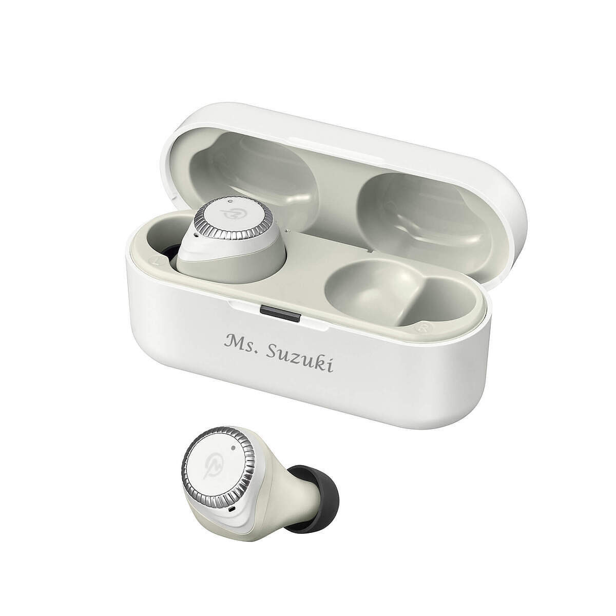 充電ケースには8文字程度の日本語、もしくは10文字程度のアルファベットが入ります。 名前を入れたり、イヤホンを取り出したりしまう度に、うれしい気持ちを感じることができる特別なプレゼントになります。